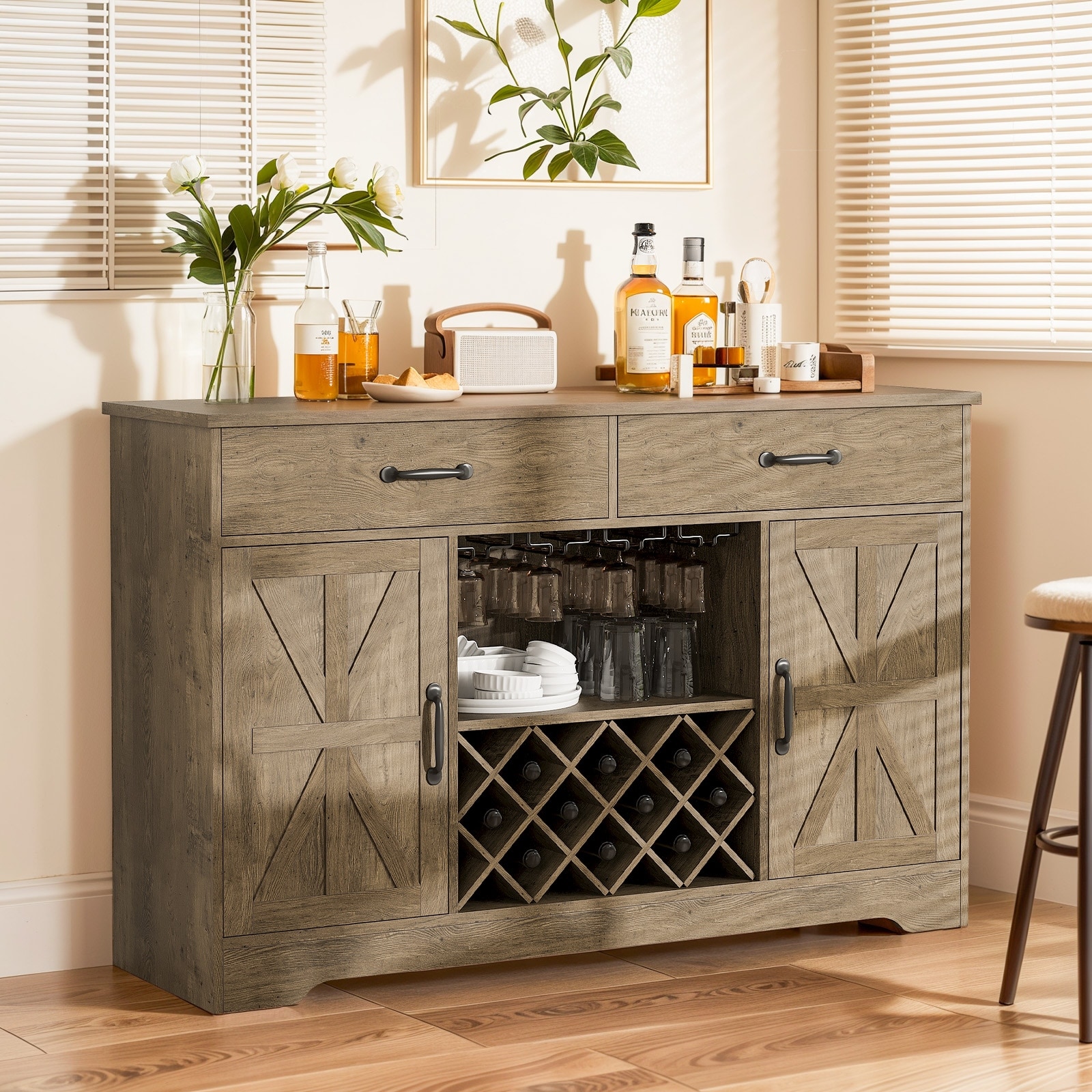 Farmhouse Wine Cabinet with Sliding Barn Doors and Storage
