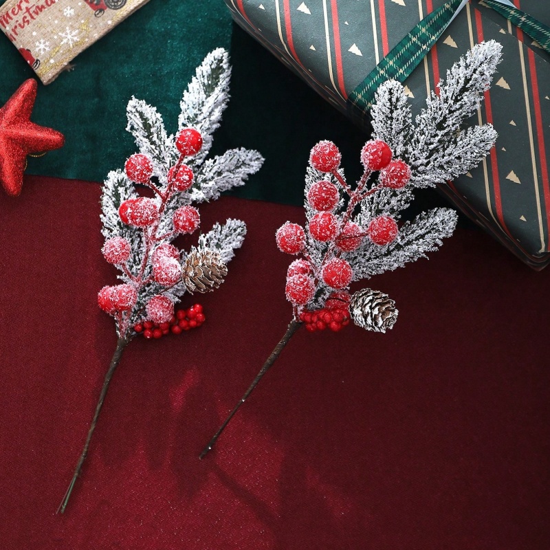 Artificial Pine Branches, Christmas Decoration, Holly Red Berry Branches, Wreath, Christmas Tree Gifts Decoration 7 1pcs