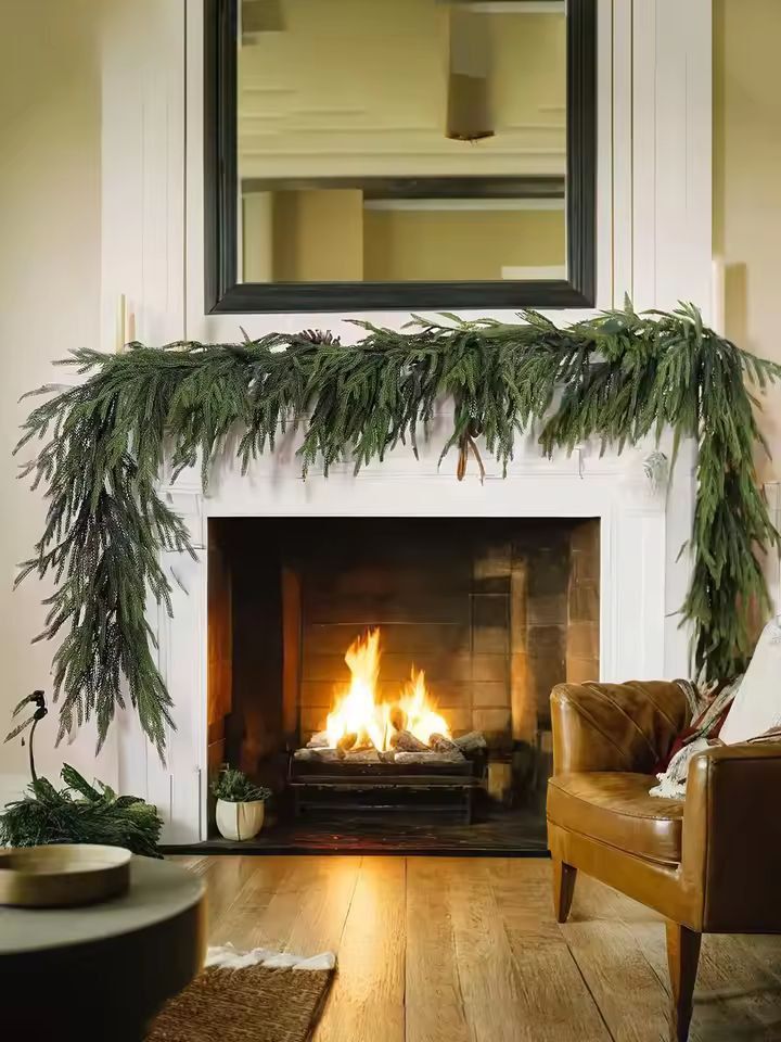 Elegant Norfolk Pine Christmas Wreath Realistic Artificial Green Garland For Indoor & Outdoor Holiday Decor 2.7m