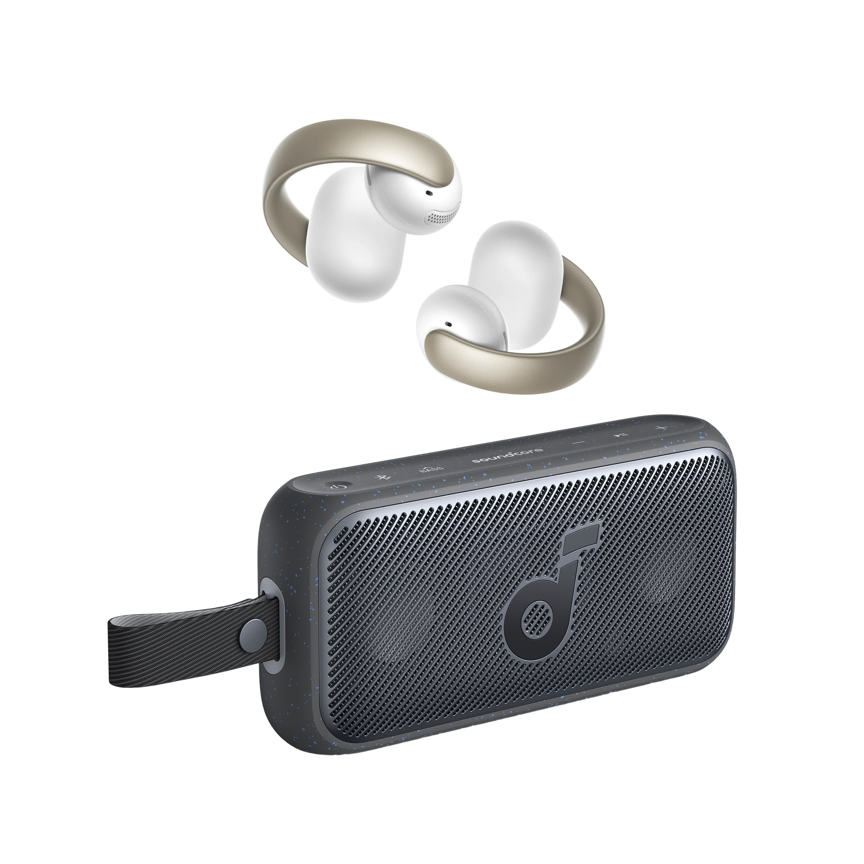 AeroClip | Open-Ear Clip-On Earbuds & Motion 300 | Portable Bluetooth Speaker Bundle