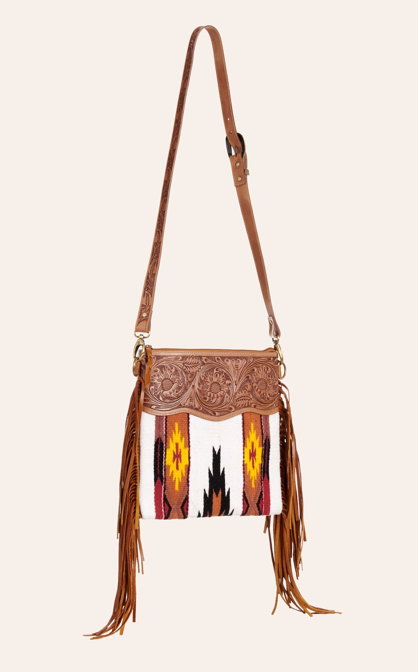 Myra Bag Fringed Brown Leather Saddle Blanket Crossbody Bag - NOSZ - From Cavender's