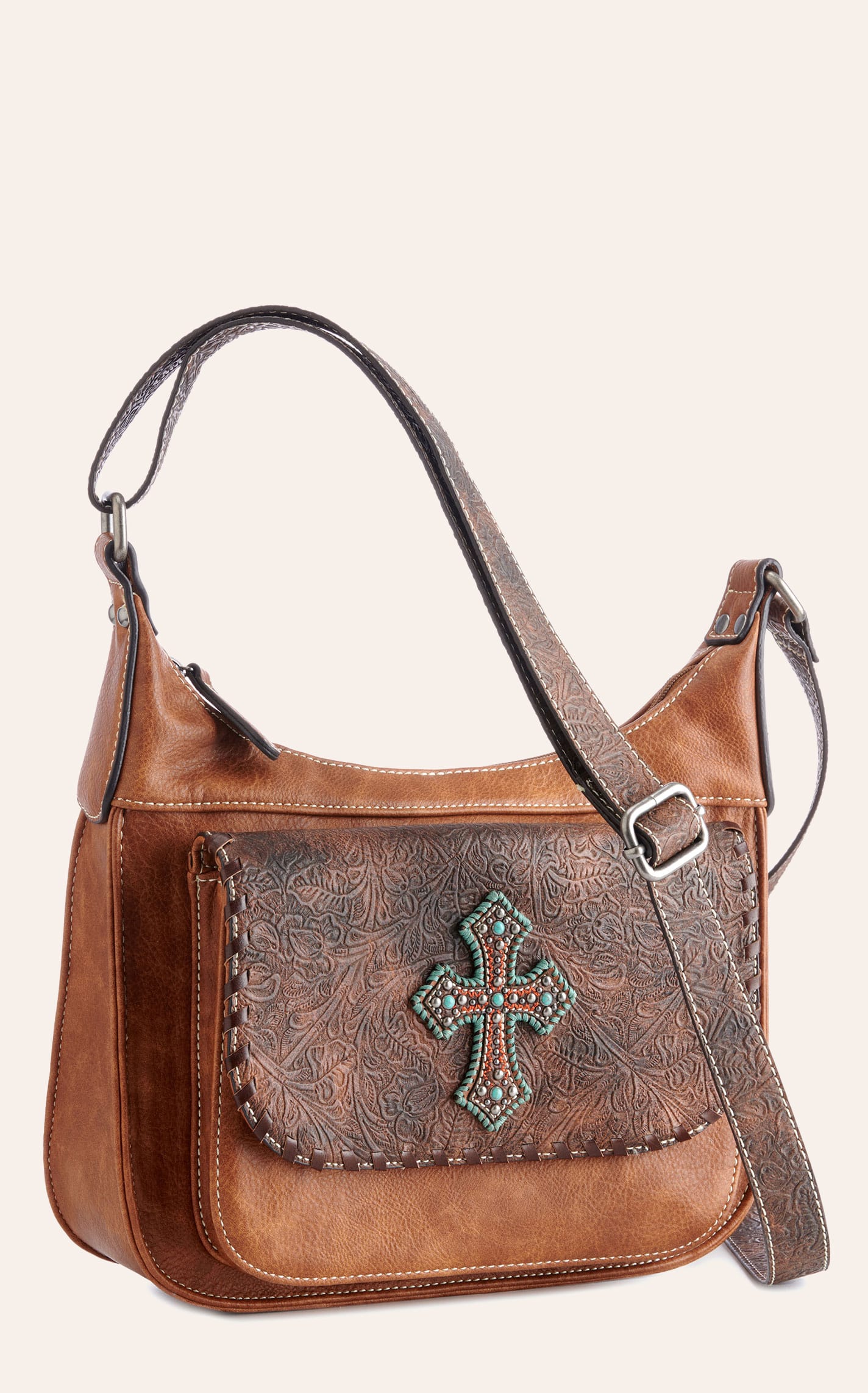 Blazin Roxx Women's Brown Tooled With Cross Concealed Weapon Shoulder Strap Purse - NOSZ - From Cavender's