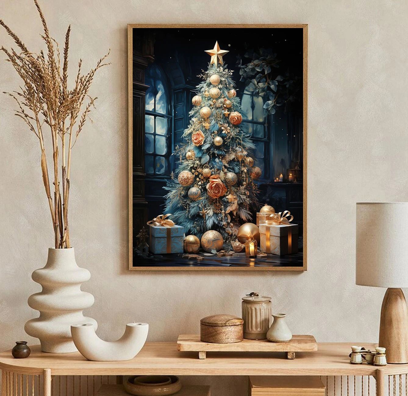 Classic Traditional Christmas Wall Art | Santa Claus & Tree Gift Poster Canvas Painting 15 50 X 70 Cm