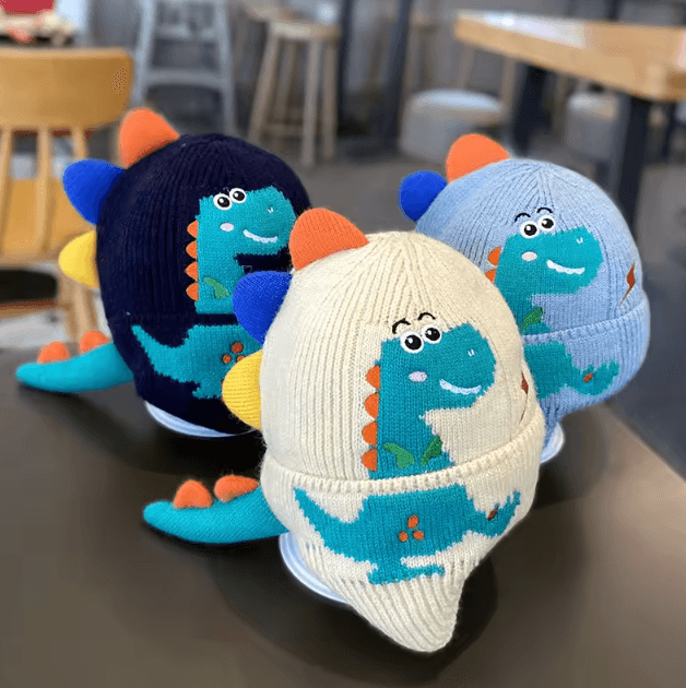 DinoWarm Kids Winter Balaclava Hat Plush Ear Protection Cartoon Beanie 2