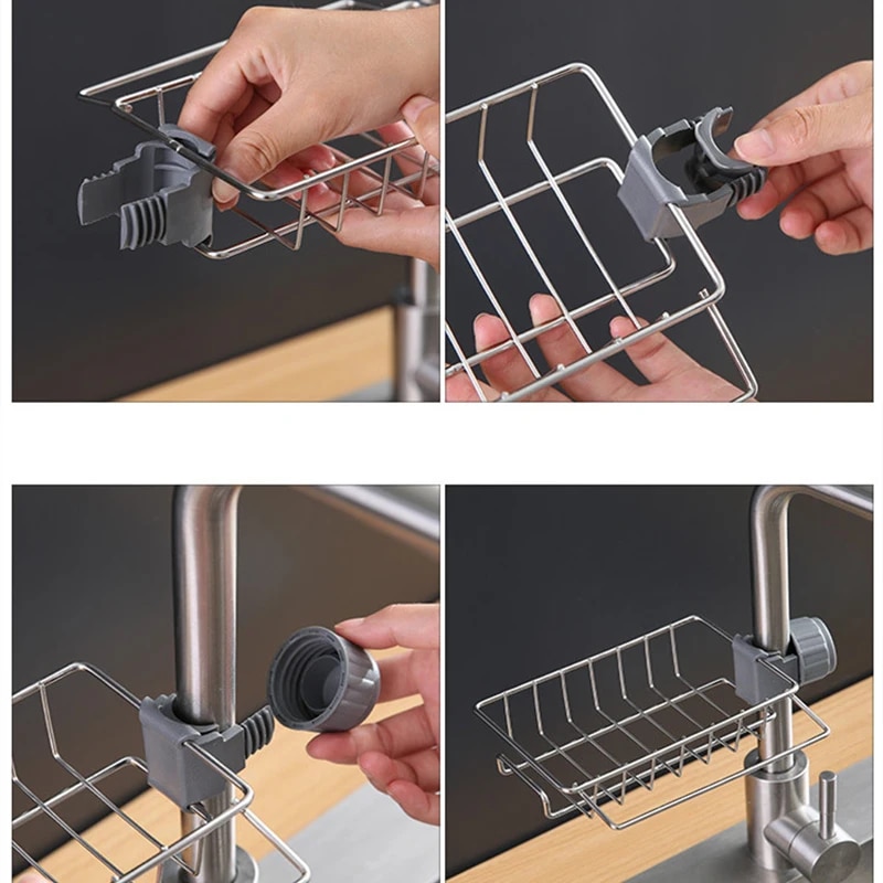 Stainless Steel Sink Drain Rack With Sponge Storage & Faucet Holder Normal