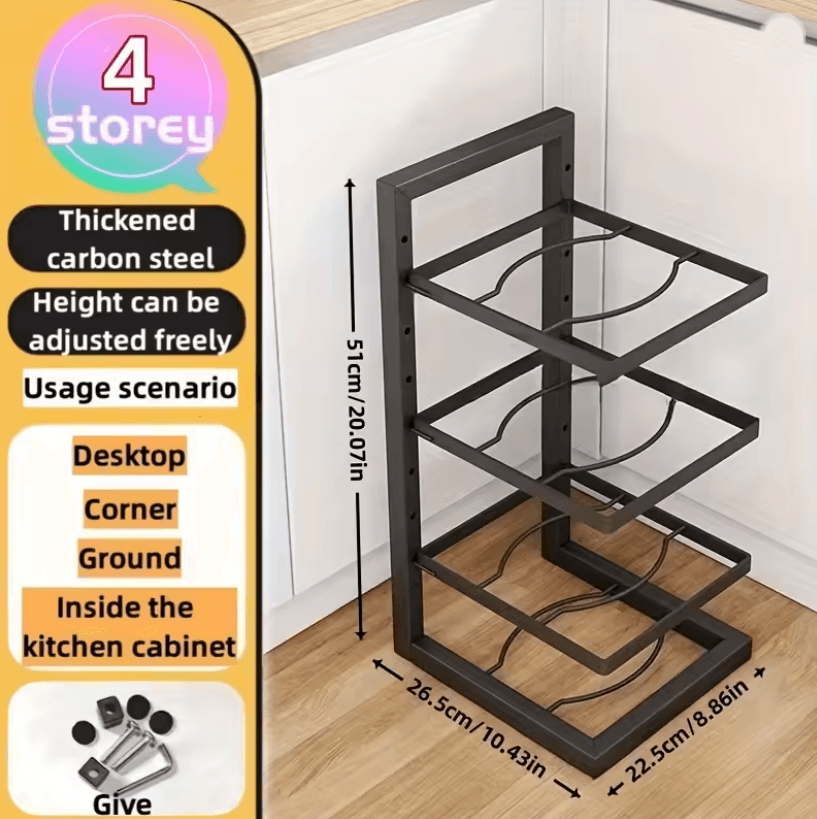 Adjustarack Multi Layer Adjustable Pot Rack Organizer Stainless Steel Kitchen Pot Storage Rack 4 Tier Black