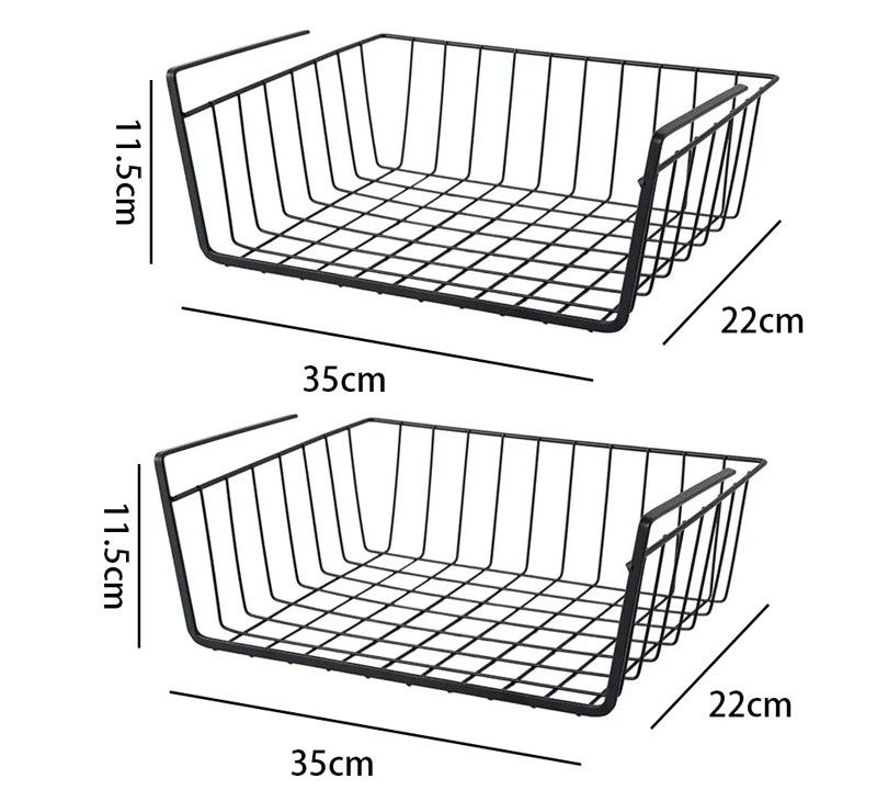 Hanging Basket Storage Rack, Multi Functional Perforated Iron Bottom Wire Basket For Kitchen & Bathroom Organization small Black 2pc