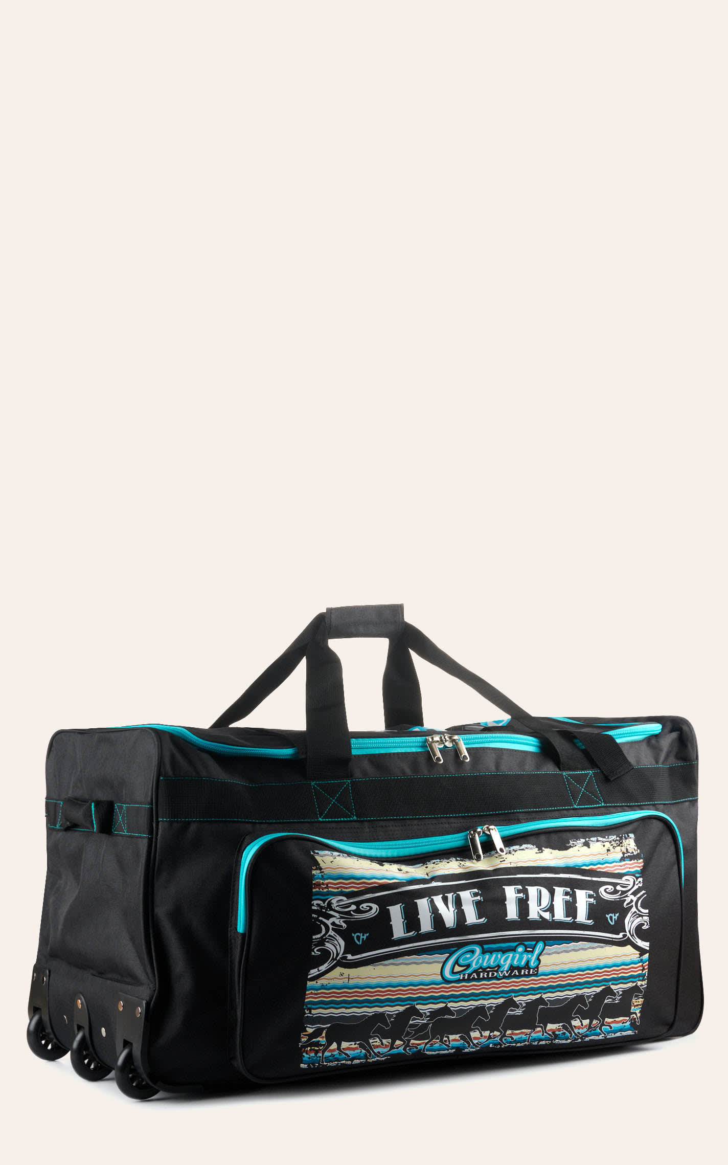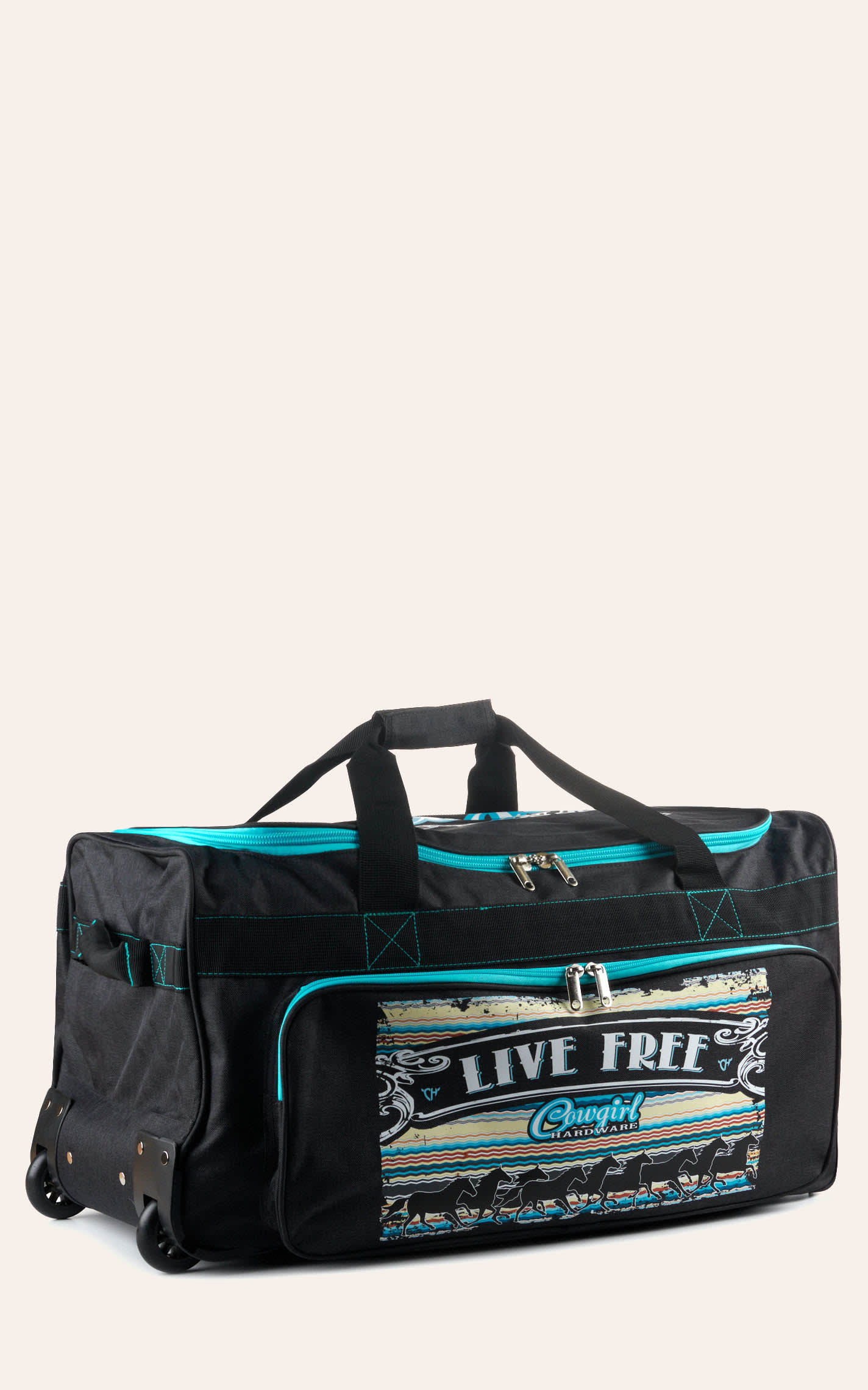 Cowgirl Hardware Charcoal and Turquoise Live Free 26" Inch Rolling Gear Bag - NOSZ - From Cavender's