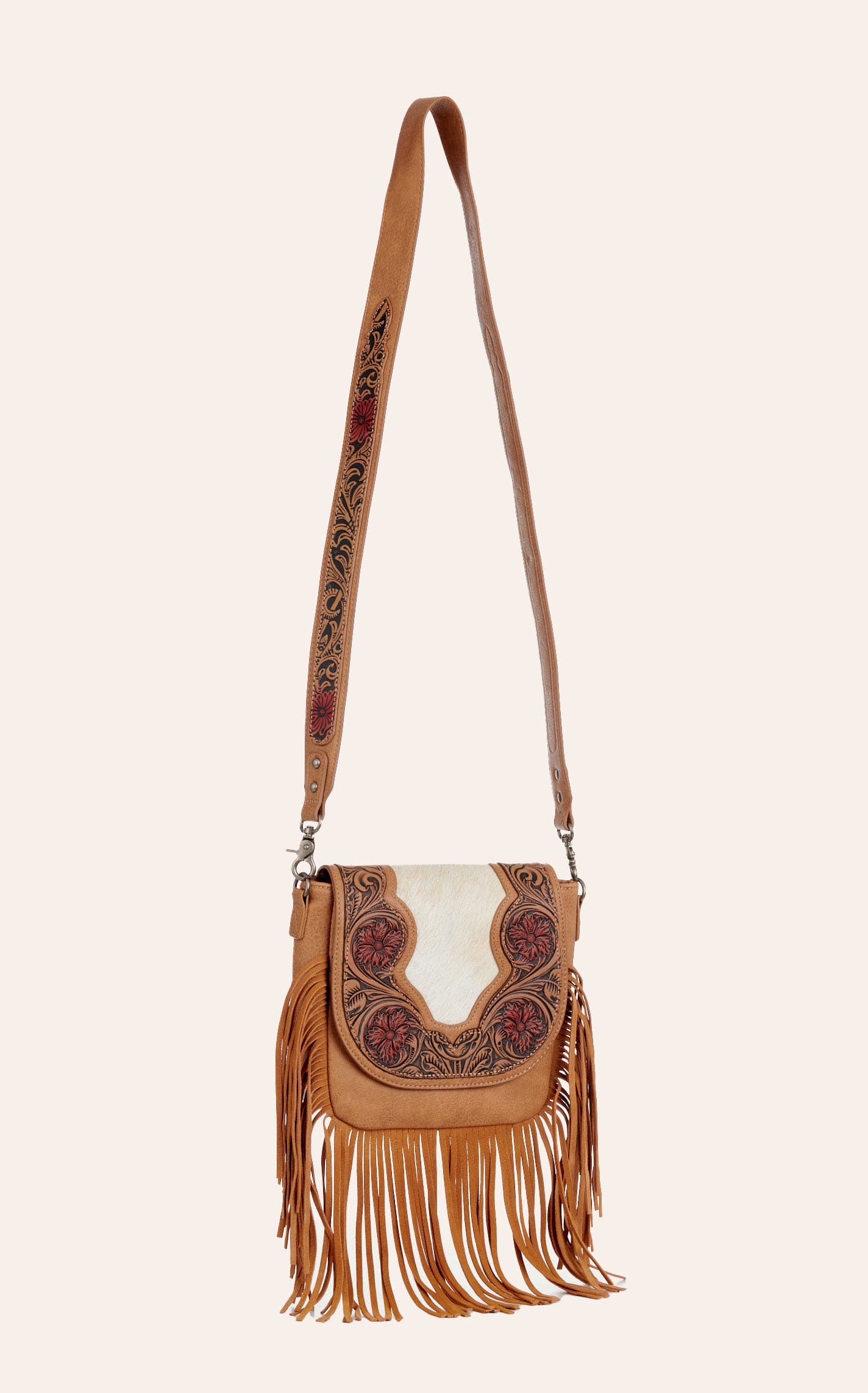 Trinity Ranch Genuine Hair On Cowhide Tooled Fringe Crossbody Bag - NOSZ - From Cavender's