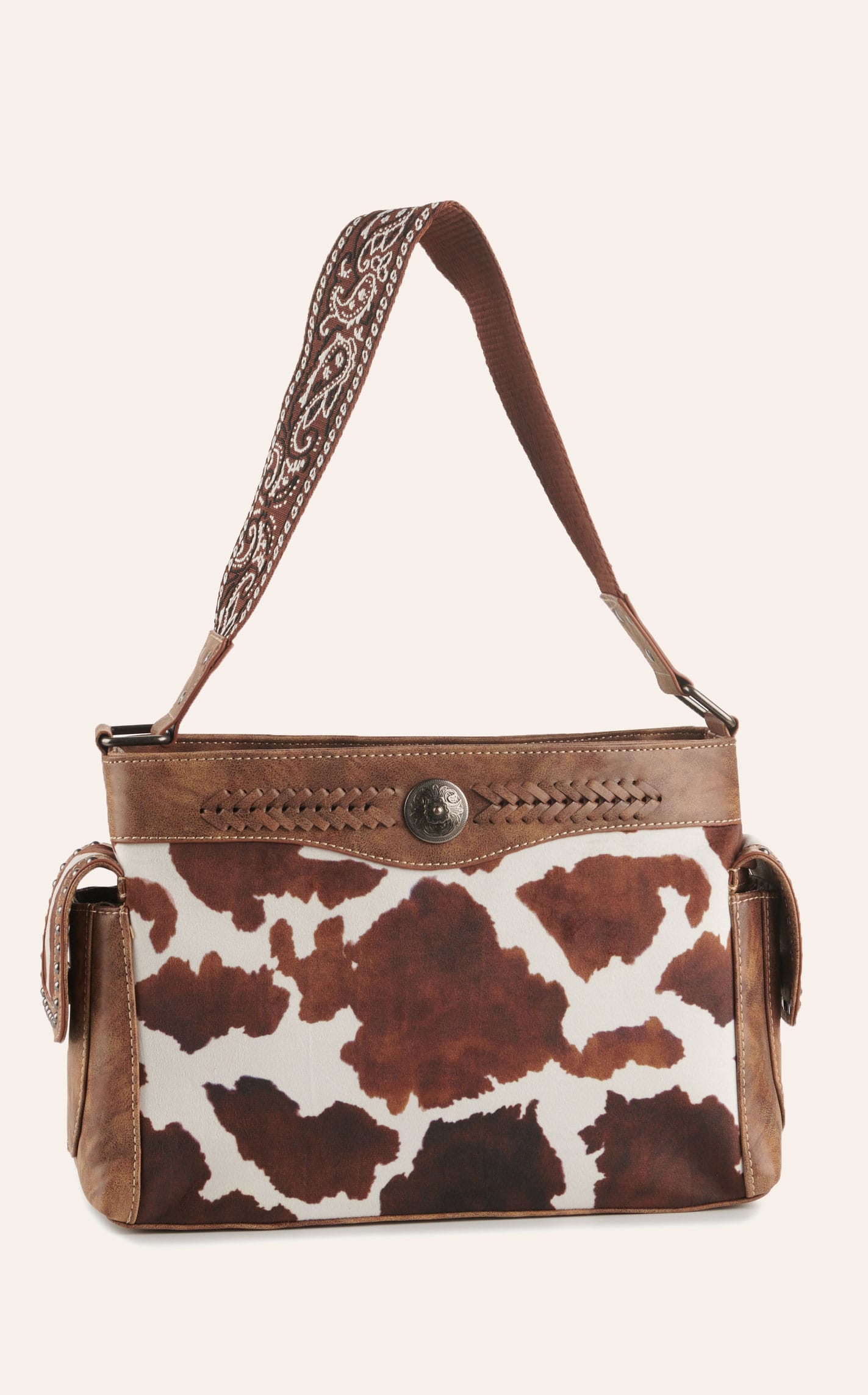 Nocona Tan & Soft Cow Print Leather with Paisley Embroidery Over the Shoulder Bag - NOSZ - From Cavender's