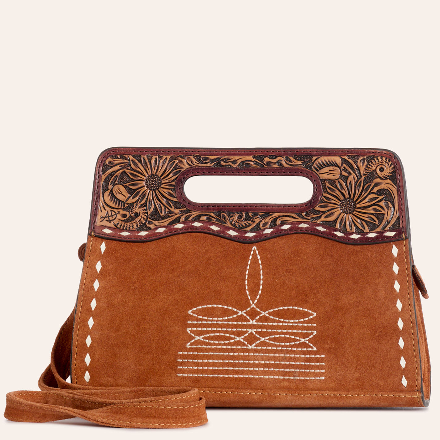 American Darling Tan Boot Stitch Tooled Handle Crossbody Bag - NOSZ - From Cavender's