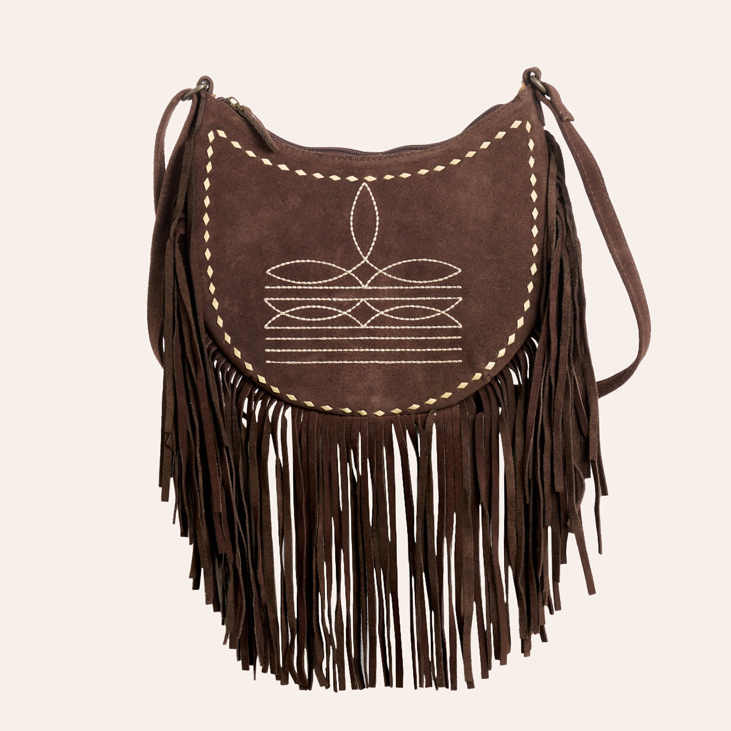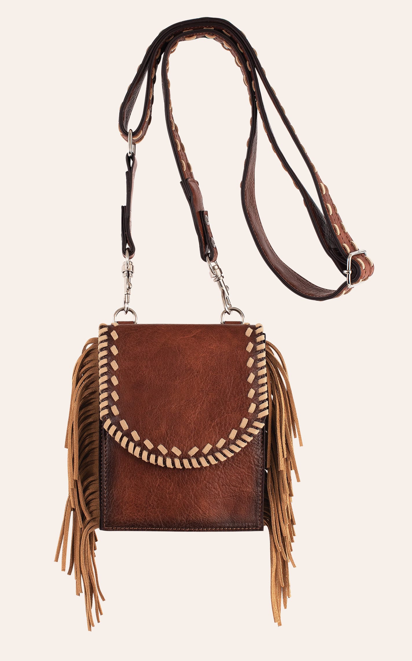 American Darling Brown Boot Stitch Fringed Crossbody Saddle Bag - NOSZ - From Cavender's