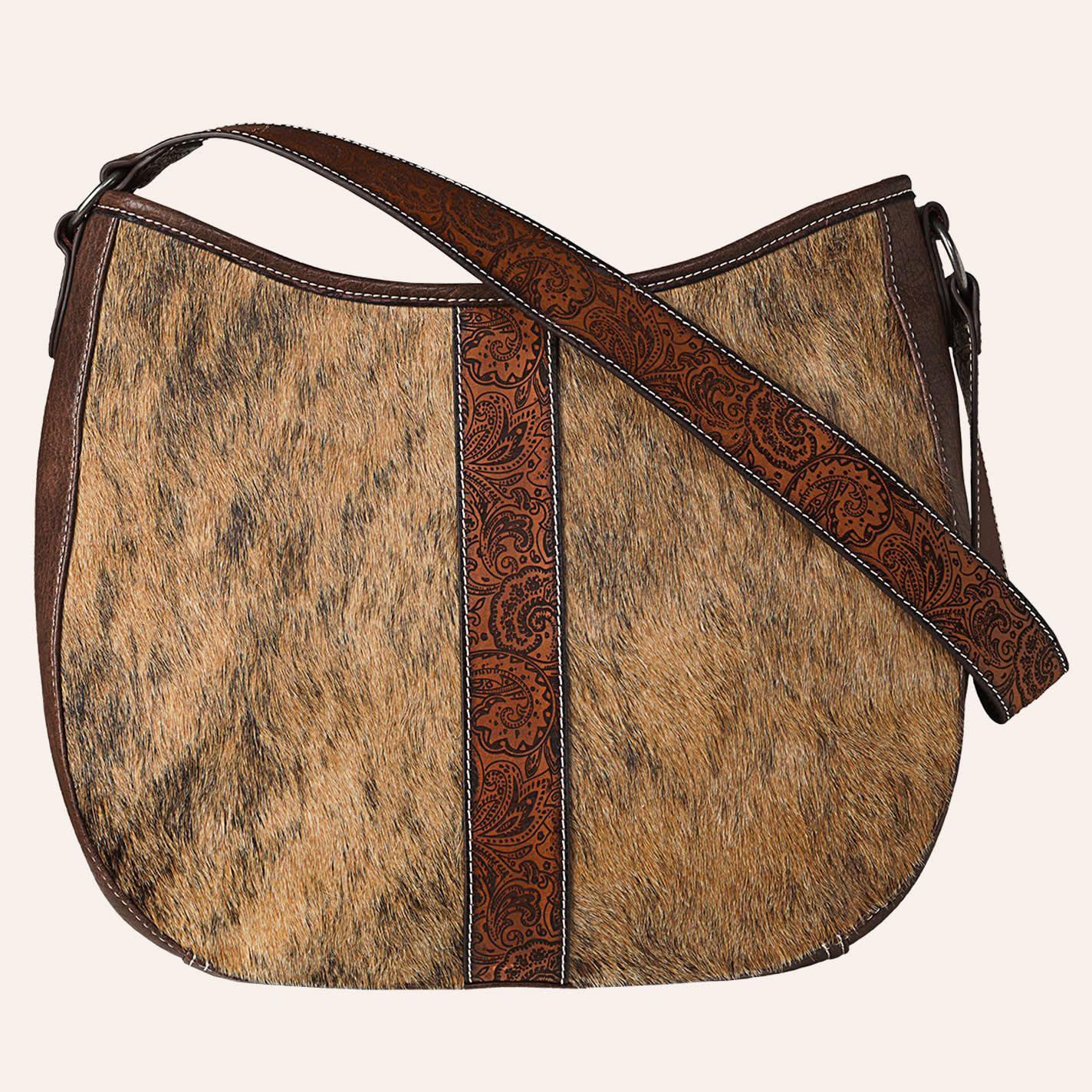 Nocona Brown and Tan Emmy Tooled Leather and Hair On Cowhide Shoulder Bag - NOSZ - From Cavender's