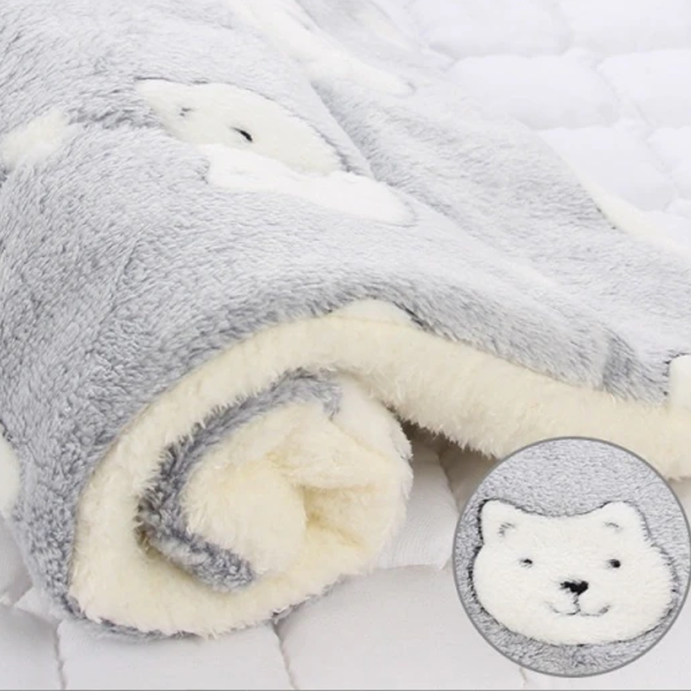 Relaxing Cozy Calming Cat & Dog Blanket Grey With Bear