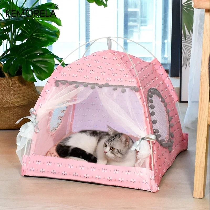 Floral Pet Tent Bed For Cats And Small Dogs With Semi Enclosed Design l grey