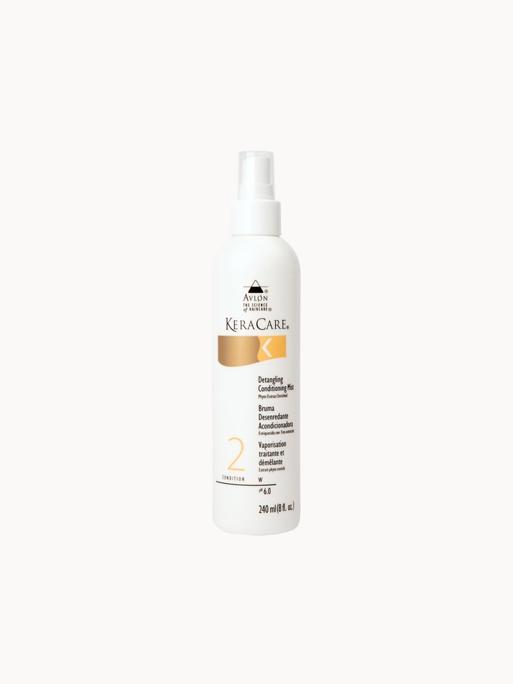 KeraCare Detangling Conditioning Mist This Detangling Conditioning Mist from KeraCare works to deeply hydrate the hair whilst detangling and releasing knots to leave your hair silky soft and super smooth. Containing essential moisturising conditioners, this conditioning mist contains phyto extracts of Calendula, a moisturising herb that nourishes and injects instant hydration. Working to smooth the cuticles of the hair to give you a tangle free finish, hair will be left light, smooth and static free, enabling you to style with ease. Directions of use: Spray on lightly to freshly shampooed hair Do not rinse out Continue to dry and style