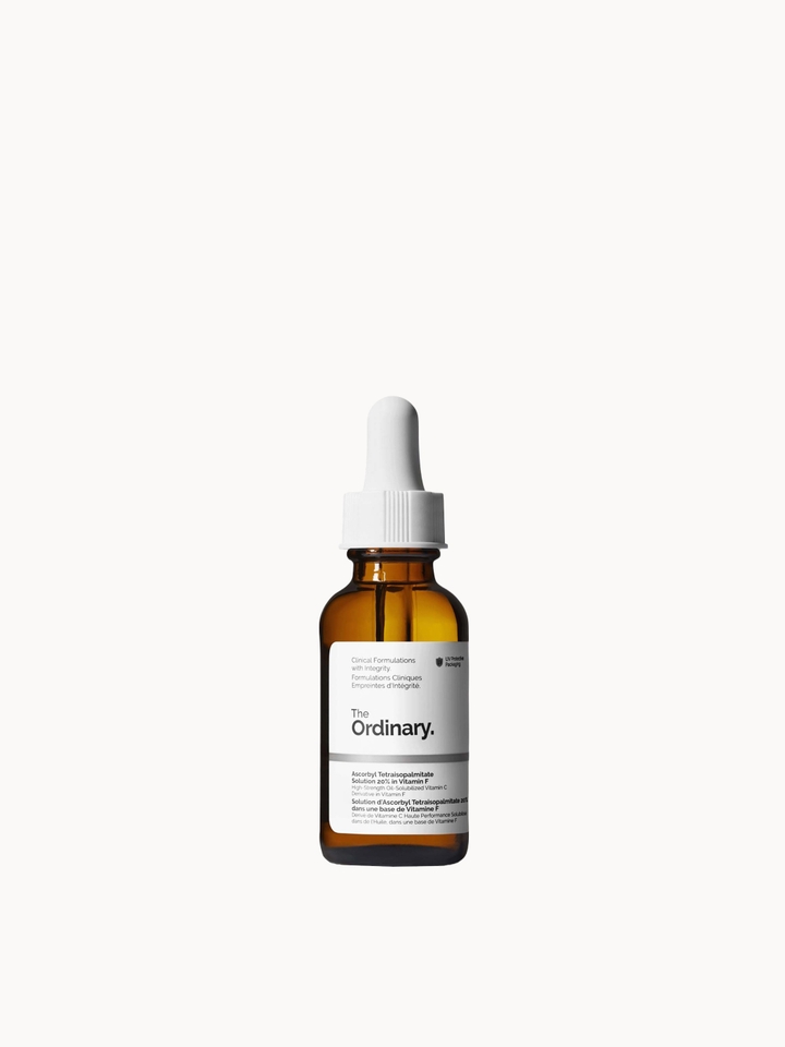 Reveal a brightened complexion with The Ordinary Ascorbyl Tetraisopalmitate Solution 20% in Vitamin F; a hydrating oil that works to transform skin.Ascorbyl Tetraisopalmitate is an oil-soluble derivative of Vitamin C. Arriving as a rich facial oil, the vitamin packed solution is both potent and effective, whilst being kind to skin. The concentrated formula blends Vitamin C with Vitamin F in order to deliver essential fatty acids, as well as visibly brightening skin tone and reducing signs of ageing, such as fine lines and wrinkles.Expect bright skin that is comfortably hydrated and radiant.