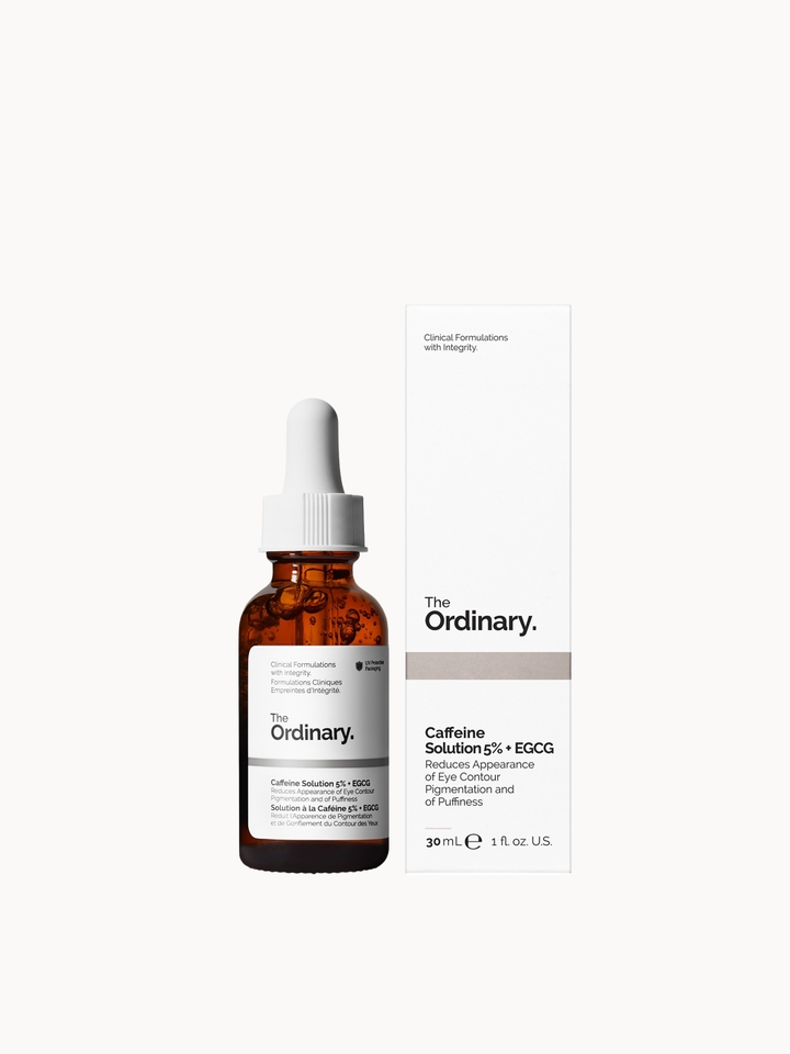Whether it’s late nights or early starts, The Ordinary Caffeine Solution 5% + EGCG offers a refreshing reset for tired-looking eyes. The lightweight serum blends a high concentration of caffeine with EGCG, a potent green tea derivative, working to refresh the appearance of the under-eye area. Designed to help reduce the look of puffiness and brighten the appearance of dark circles, the formula melts into the skin, while hydrating and nourishing. Suitable for most skin types, the high-performance formula promotes a smooth, even-looking complexion. Results: Significant decrease in the look of dark circles after 3 weeks.* Minimises the appearance of under-eye puffiness in 3 weeks** Visibly brightens the under-eye area in 3 weeks.* *Clinical testing on 19 panellists using the product 2x/day for 6 weeks **Clinical testing on 23 panellists using the product 2x/day for 6 weeks