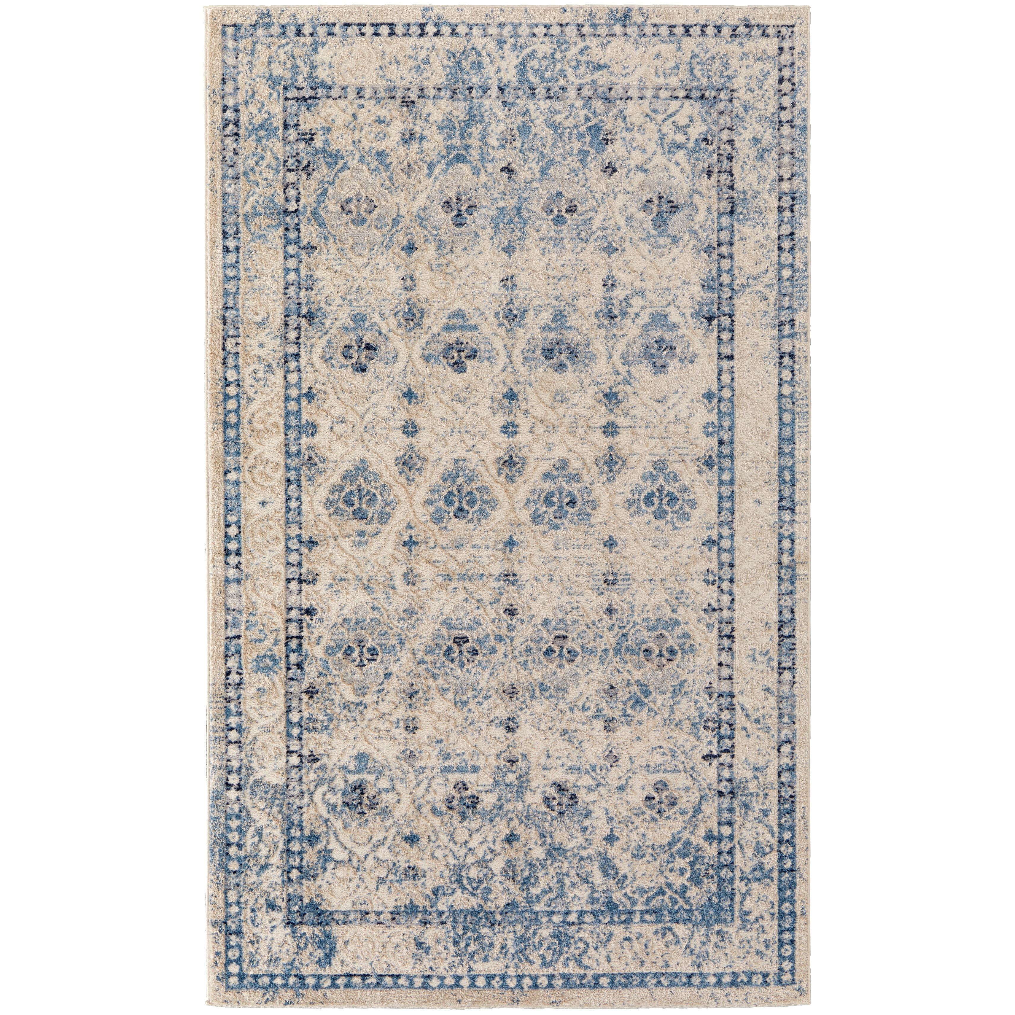 Theory Distressed Denim Blues / Greys Abstract Area Rug