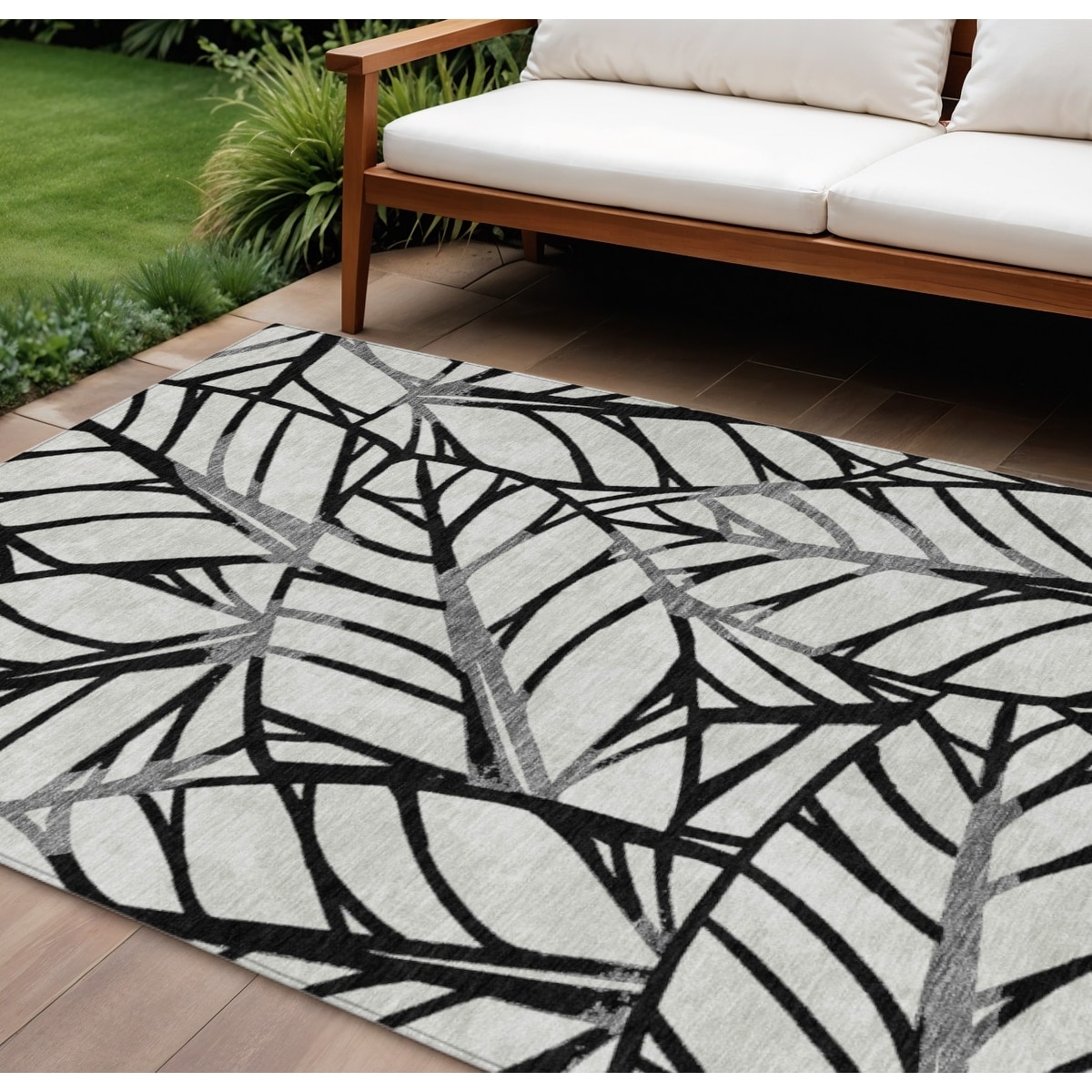 9' X 12' Black Gray And Beige Floral Washable Indoor Outdoor Area Rug - 9'3" x 12'3"