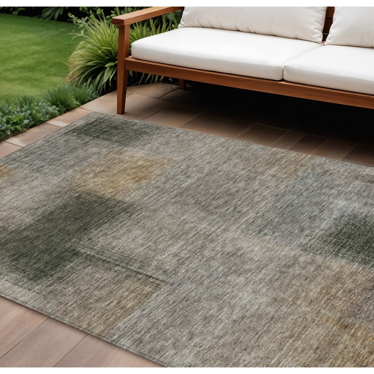 9' X 12' Olive Green Brown And Beige Abstract Washable Indoor Outdoor Area Rug - 9'3" x 12'3"