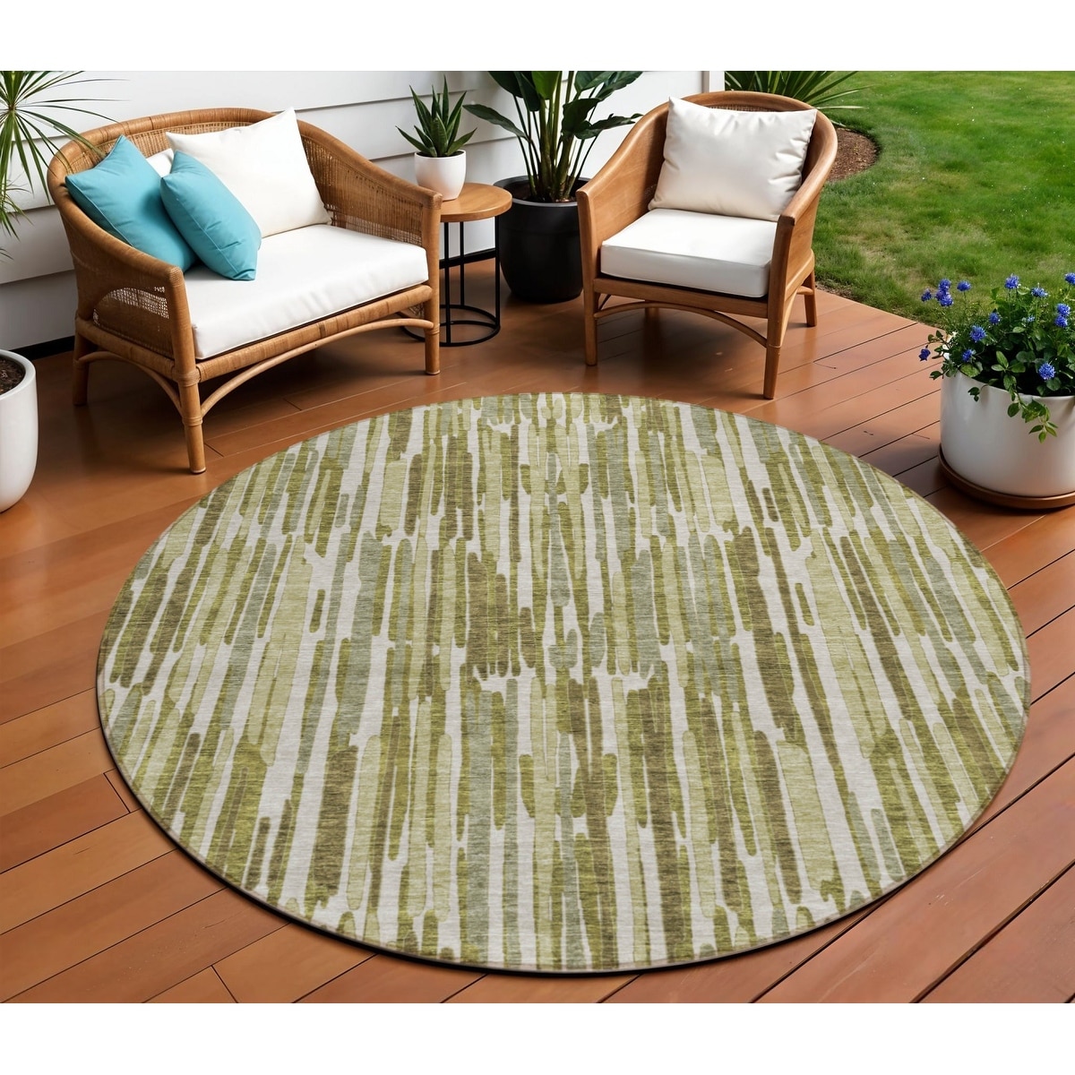8' Olive Green Brown And Beige Round Abstract Washable Indoor Outdoor Area Rug - 7' x 7' Round