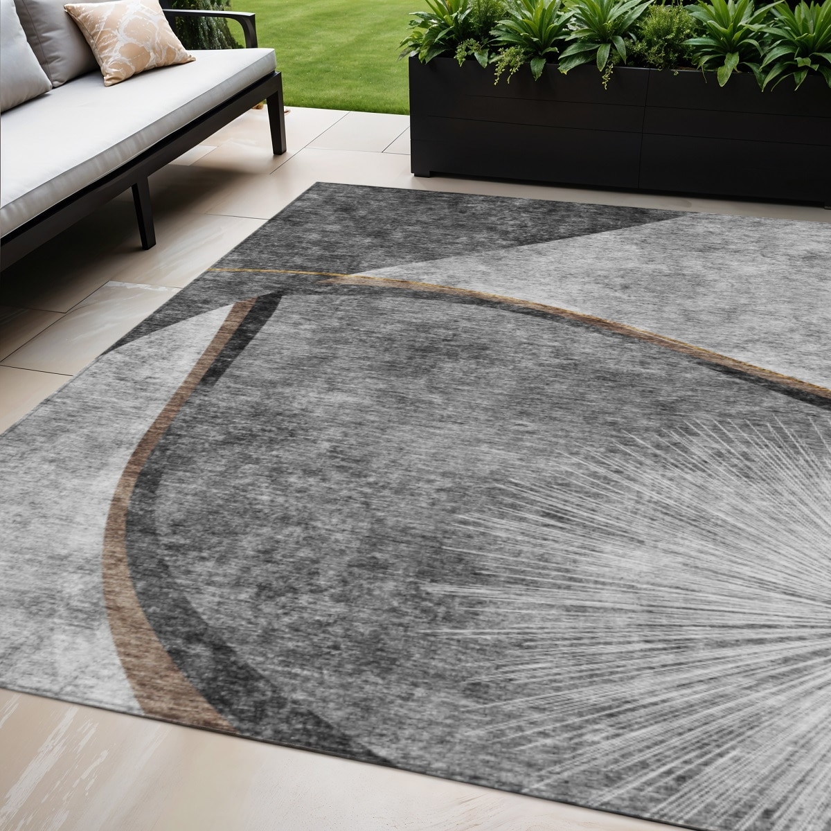 5' X 8' Gray Chocolate And Silver Abstract Washable Indoor Outdoor Area Rug - 5' Octagon