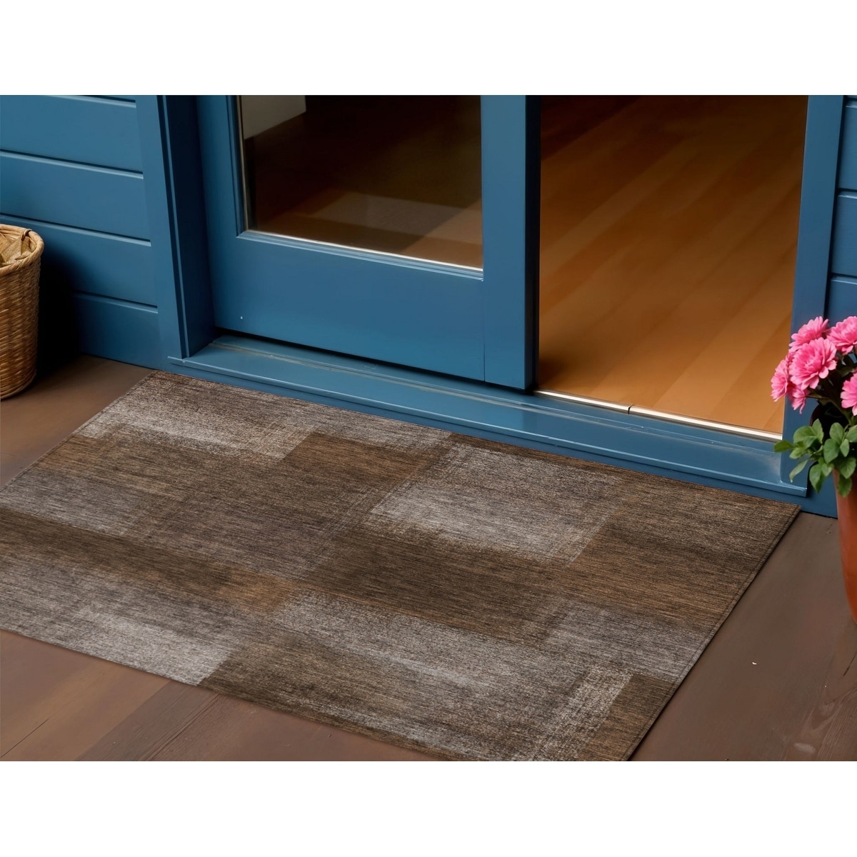 3' X 5' Brown And Ivory Abstract Washable Indoor Outdoor Area Rug - 3'6"