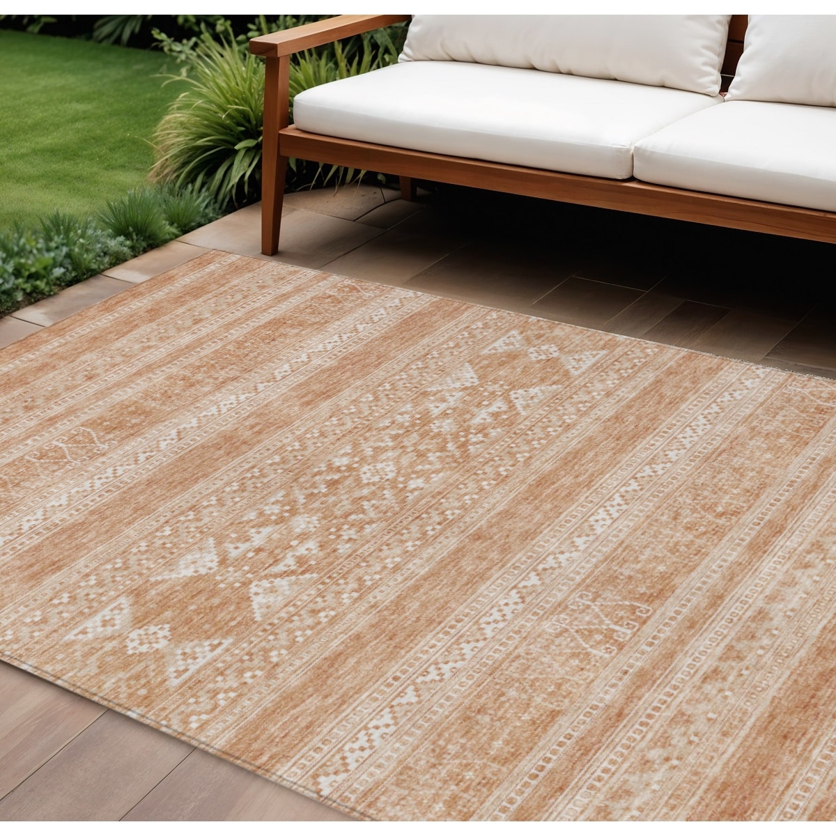 9' X 12' Copper And Ivory Southwestern Washable Indoor Outdoor Area Rug - 9'3" x 12'3"