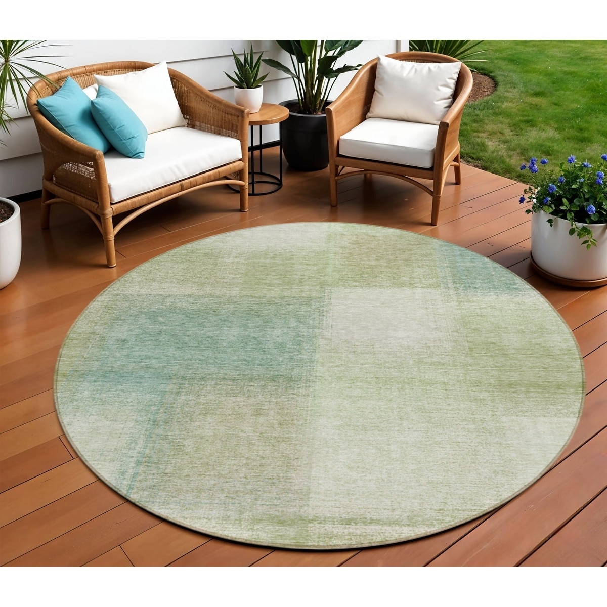8' Green And Fern Green Round Geometric Washable Indoor Outdoor Area Rug - 7' x 7' Round