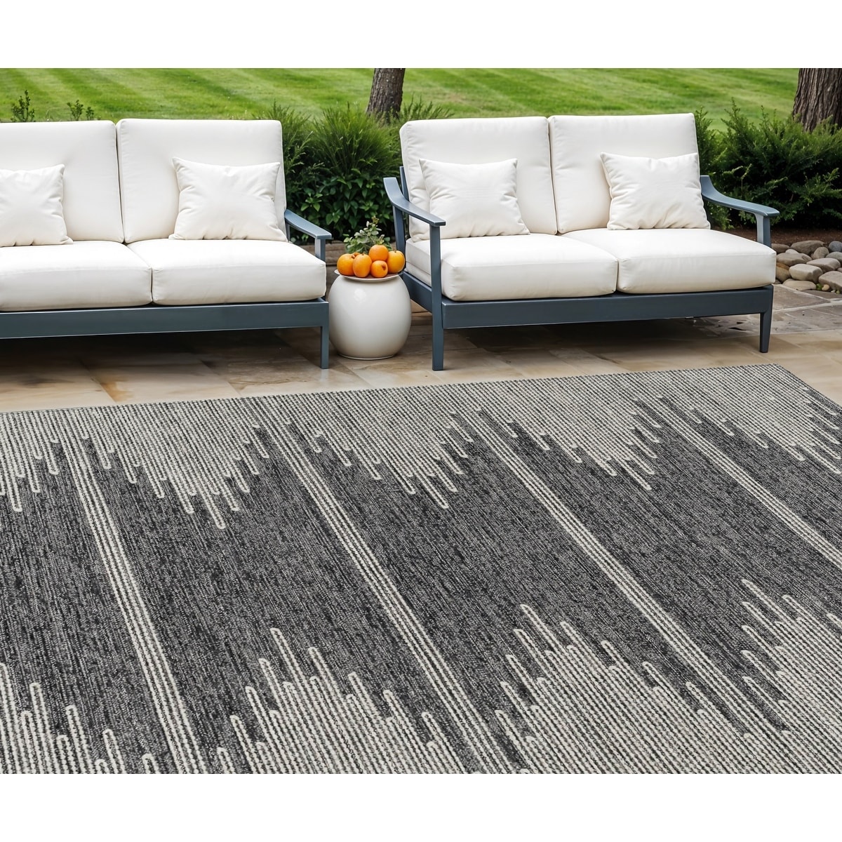 9' X 12' Charcoal And Ivory Abstract Washable Indoor Outdoor Area Rug - 9'3" x 12'3"