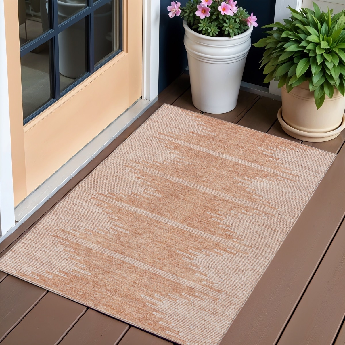 3' X 5' Salmon And Ivory Abstract Washable Indoor Outdoor Area Rug - 3'6"