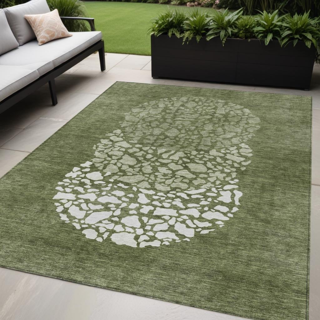 3' X 5' Green And Ivory Abstract Washable Indoor Outdoor Area Rug - 3'6"