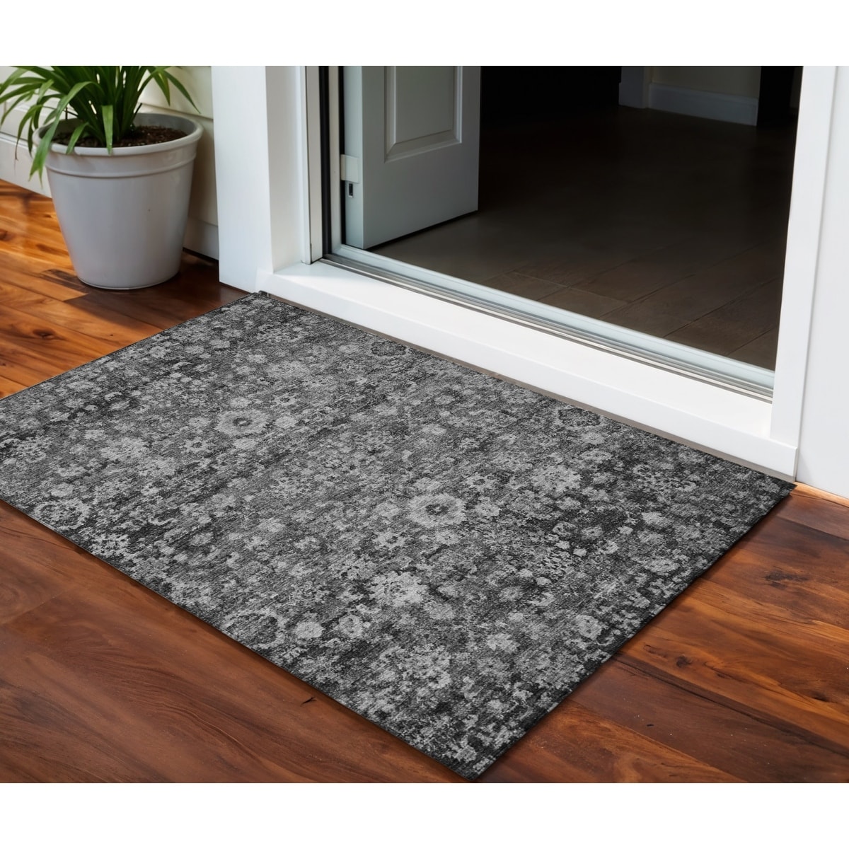 3' X 5' Gray Charcoal And Silver Oriental Washable Indoor Outdoor Area Rug - 3'6"