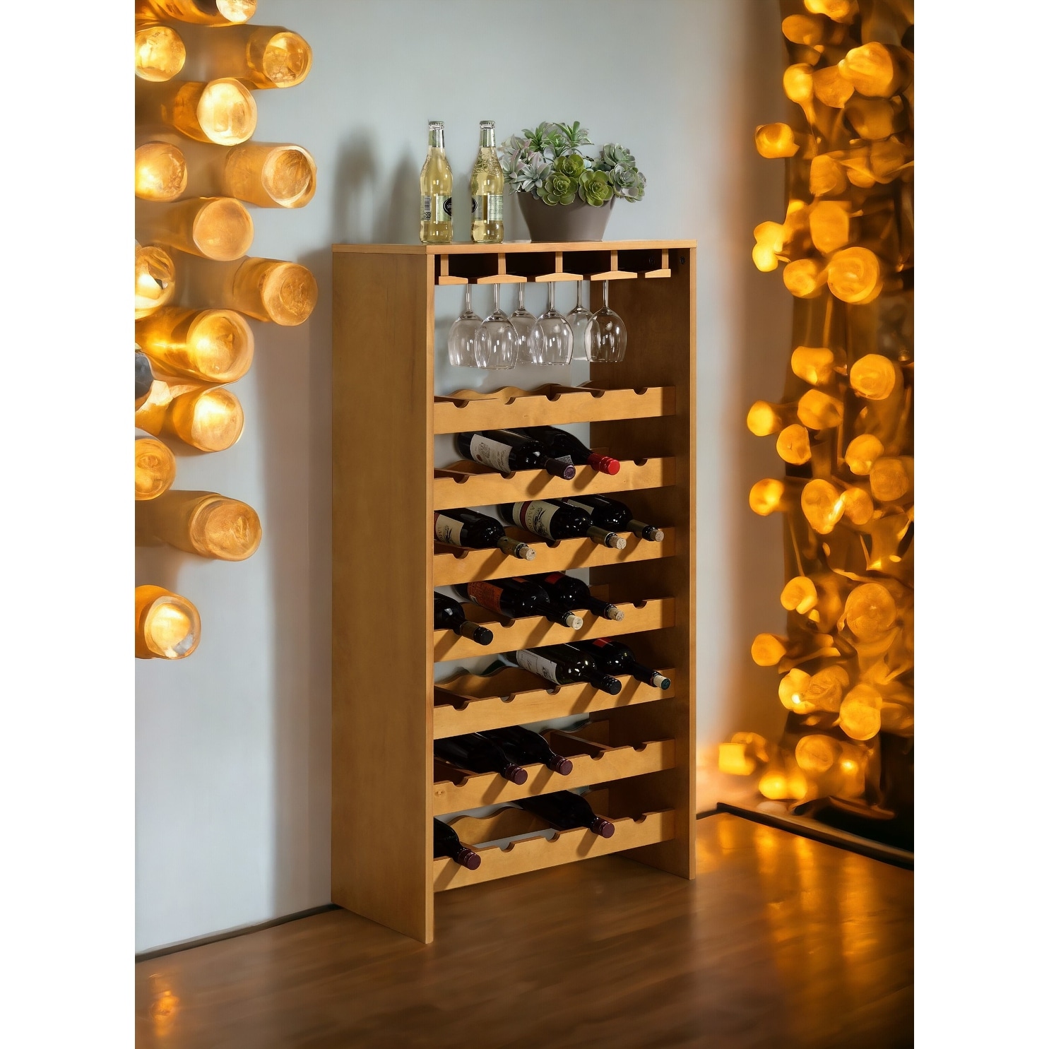 Anmytek Wine Rack with Stemware Holders 7-Tier Storage