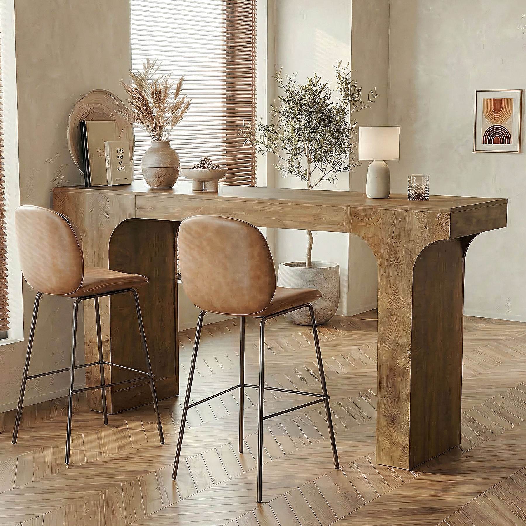 Long Bar Table Set with 3 PU Upholstered Bar Stools