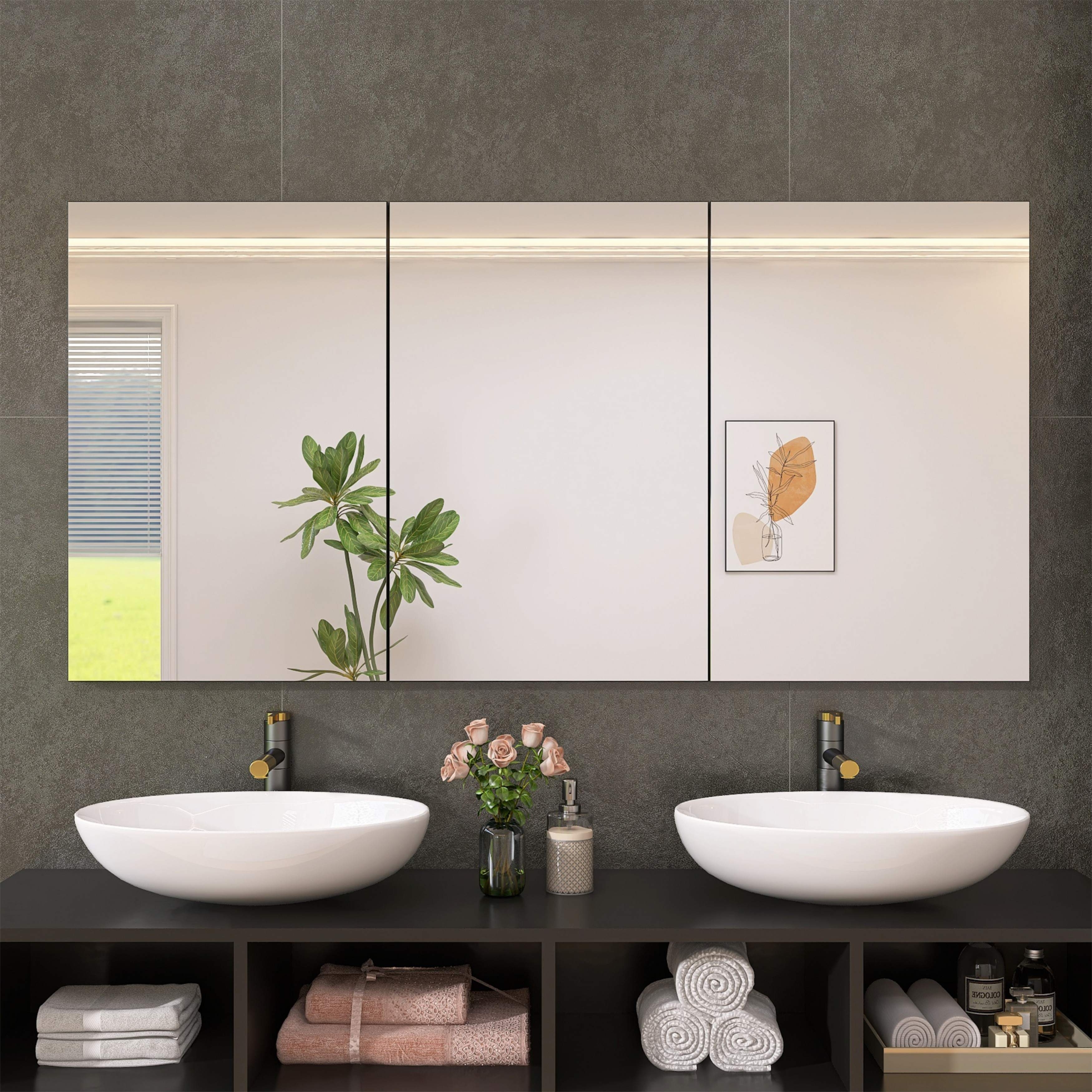 Modland Large Aluminum Medicine Cabinet with Mirror,Triple Door,Wall Mounted or Recessed,Soft Close Bathroom Mirror Cabinet