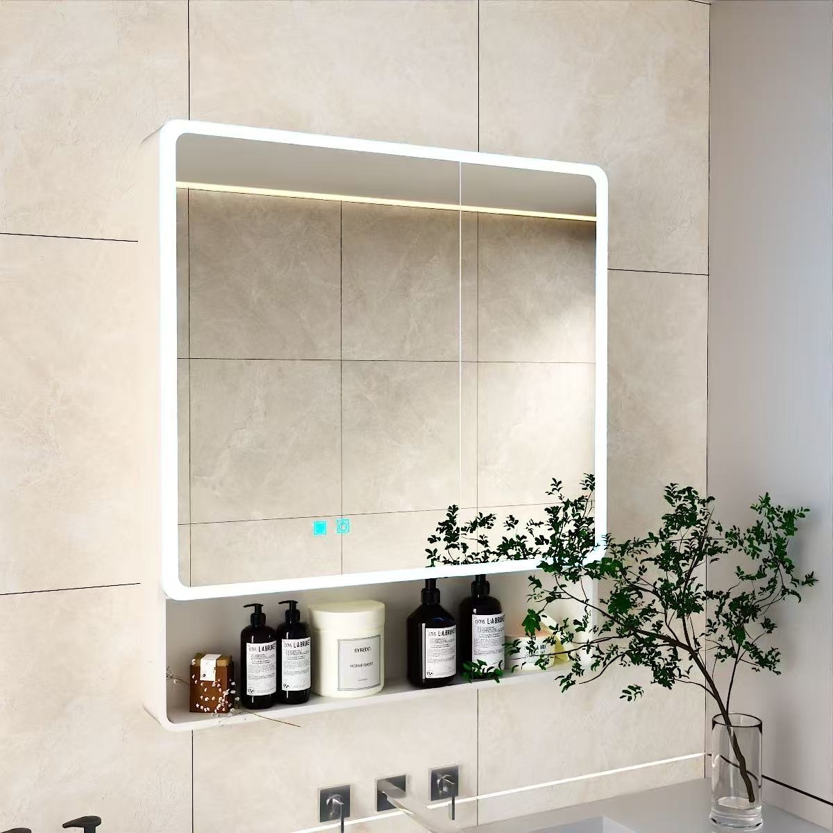 LED Bathroom Medicine Cabinet With Single-Color White Light,Anti-Fogging,Easy To Install Aluminum-Plastic Cabinet(31.5*35.43)