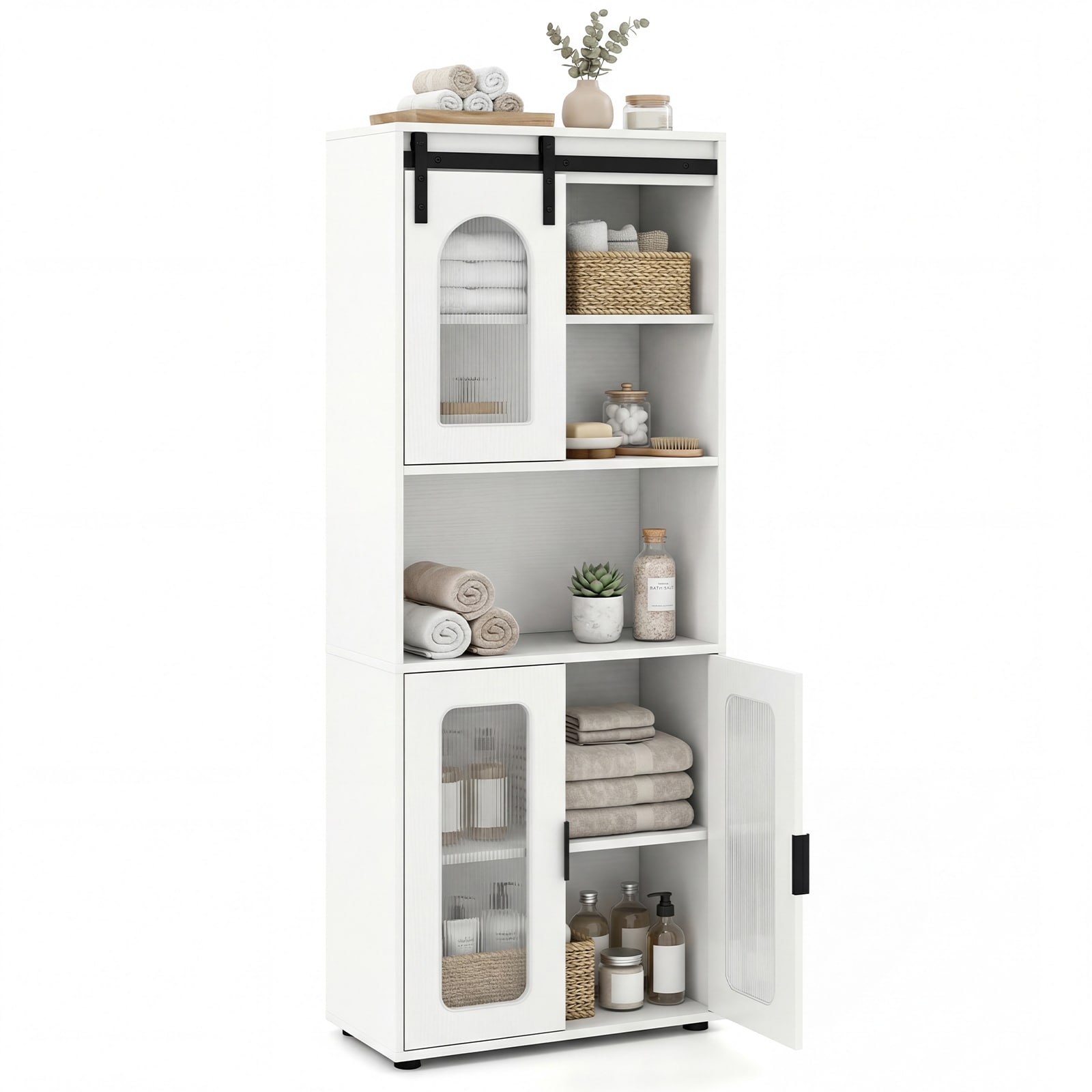 Gymax Farmhouse Bathroom Floor Cabinet 59"H Freestanding Linen Storage