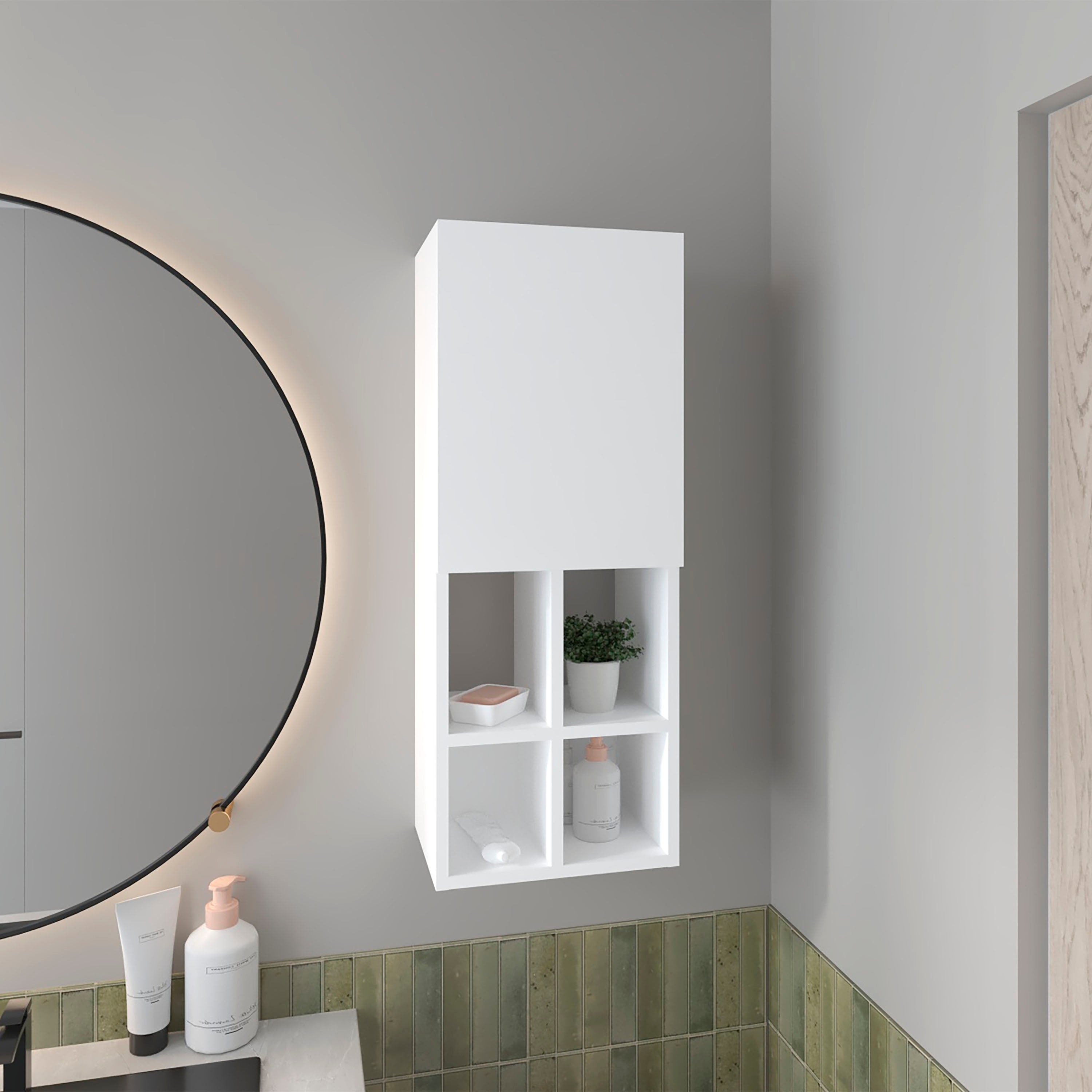 Wall-Mounted Bathroom Cabinet with Door and 4 Open Shelves, White - N/A