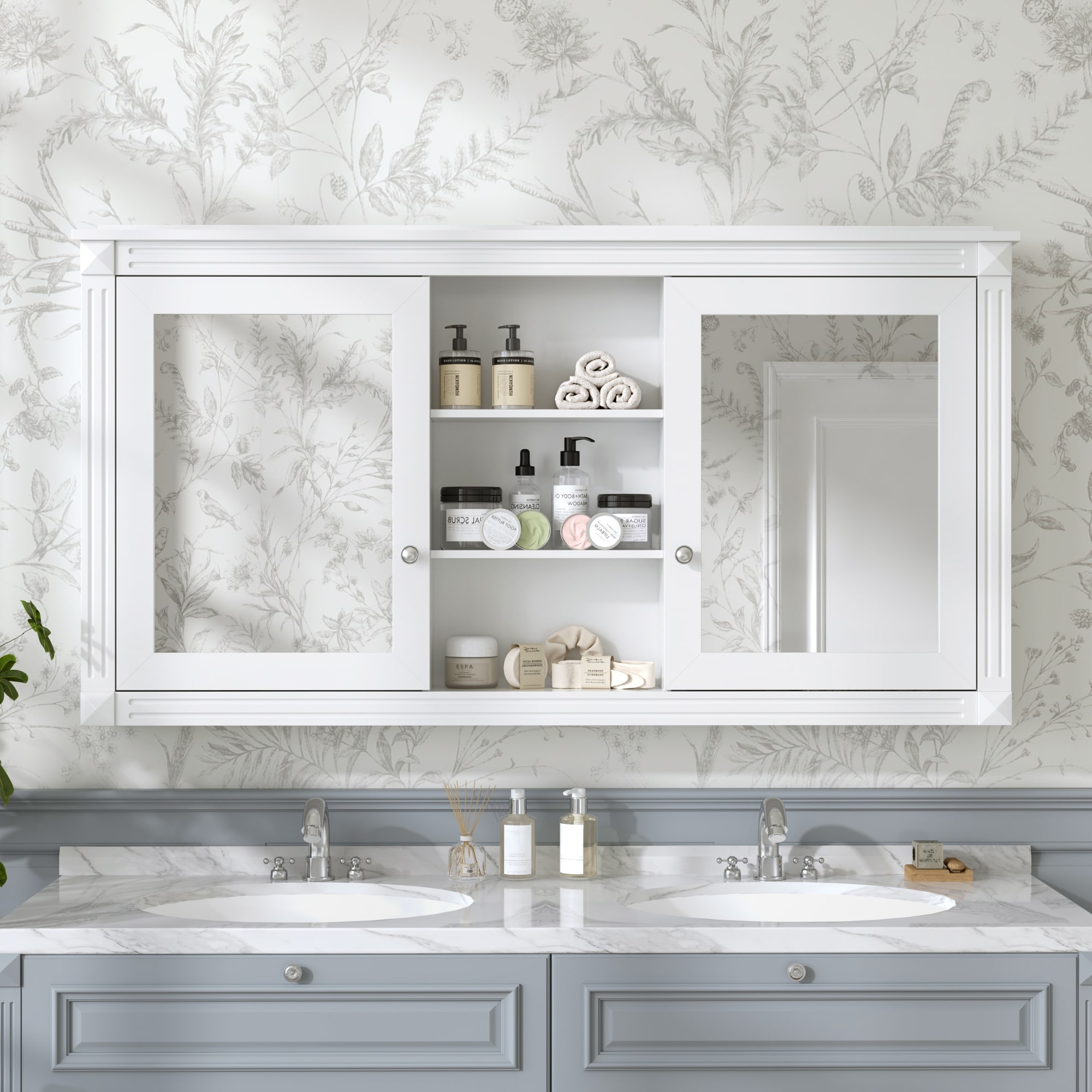 55 inch Wall-Mount 2-in-1 Mirror Cabinet with Adjustable Shelves, Soft-Closing Hinges, High-Definition Mirrors