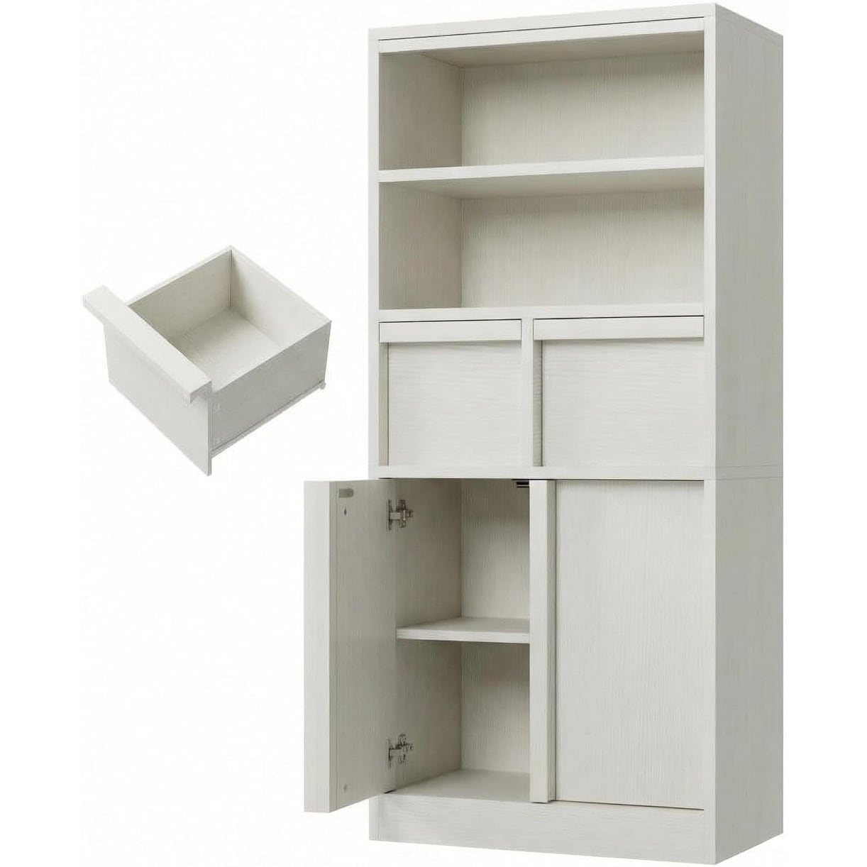 Tall Storage Cabinet, Freestanding Buffet w/ Drawers, Doors & Adjustable Shelves, Multi-Purpose Organizer, White