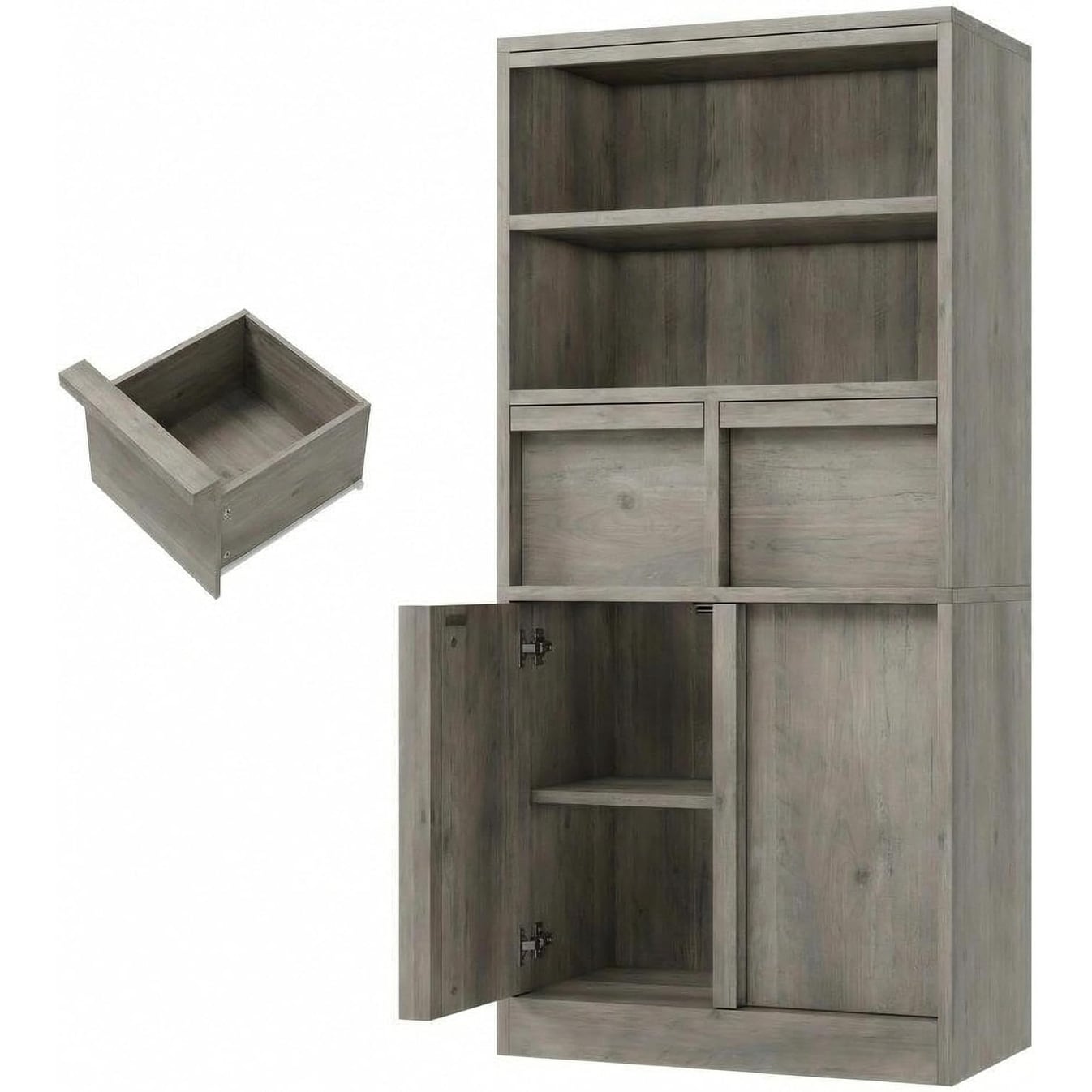 Freestanding Bathroom/Office Cabinet with 2 Doors and Drawers, Adjustable Shelf, Anti-Tip Kit Included