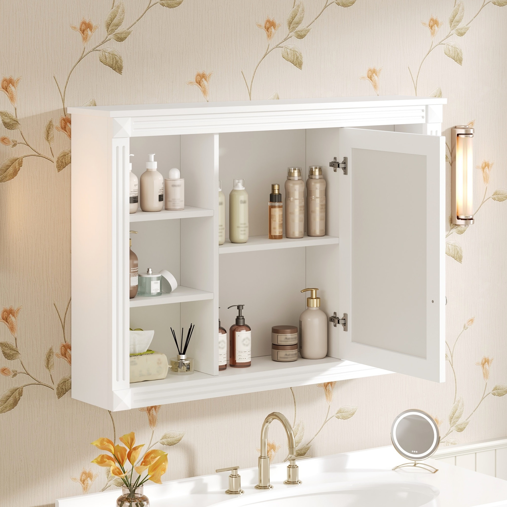 Medicine Cabinet with Mirror Lexington,Three Internal Shelves, White Finish