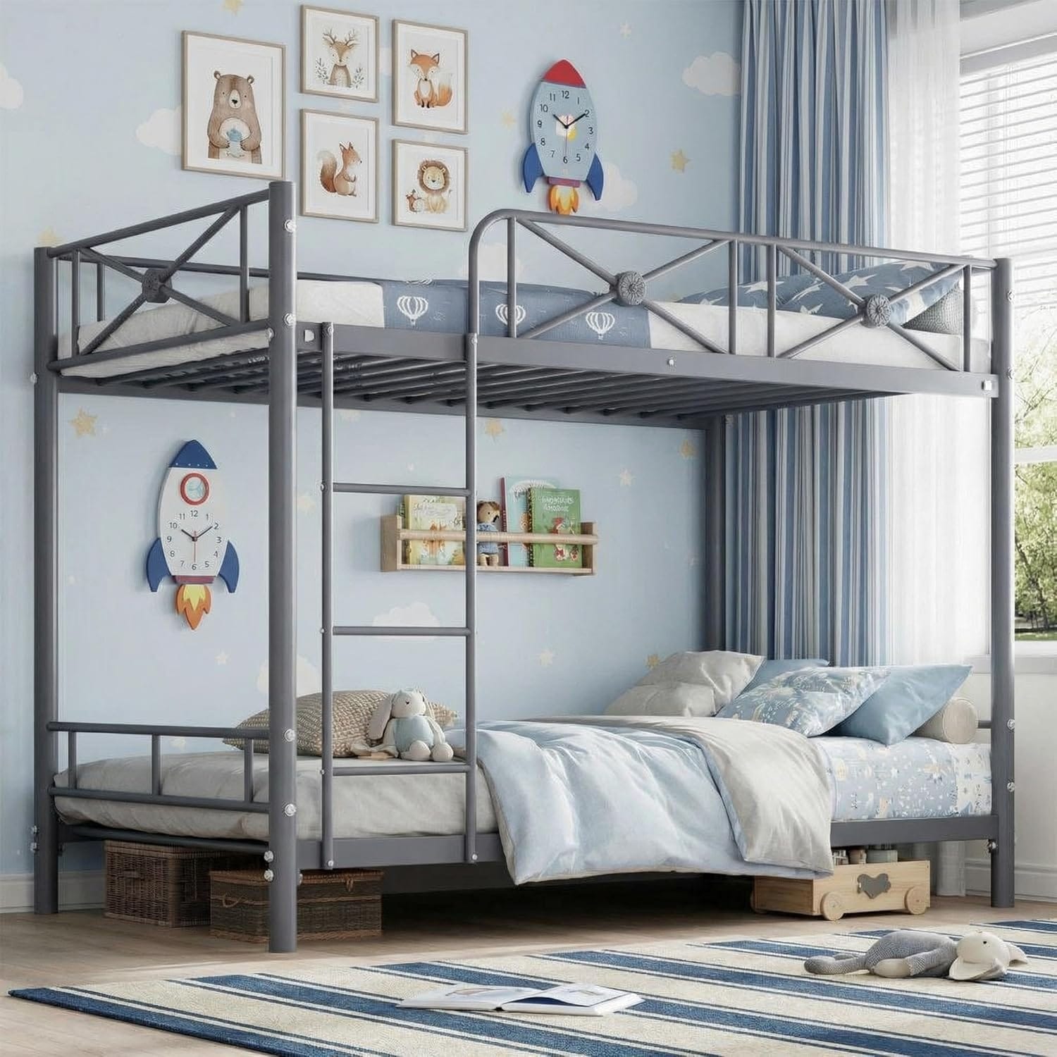 Metal Bunk Bed with Guard Rails, Heavy Duty Steel Frame, Space Saving Design for Bedroom