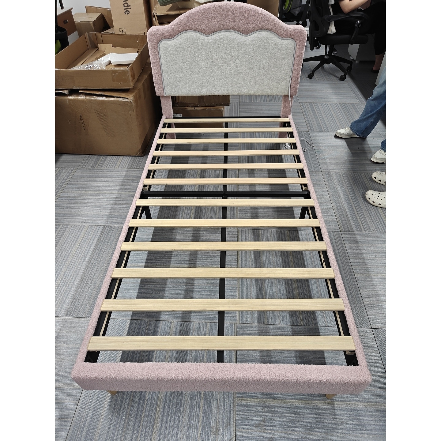Twin Size Platform Bed Frame, Velvet Upholstered Bed Frame with Height Adjustable Bear-Shaped Headboard