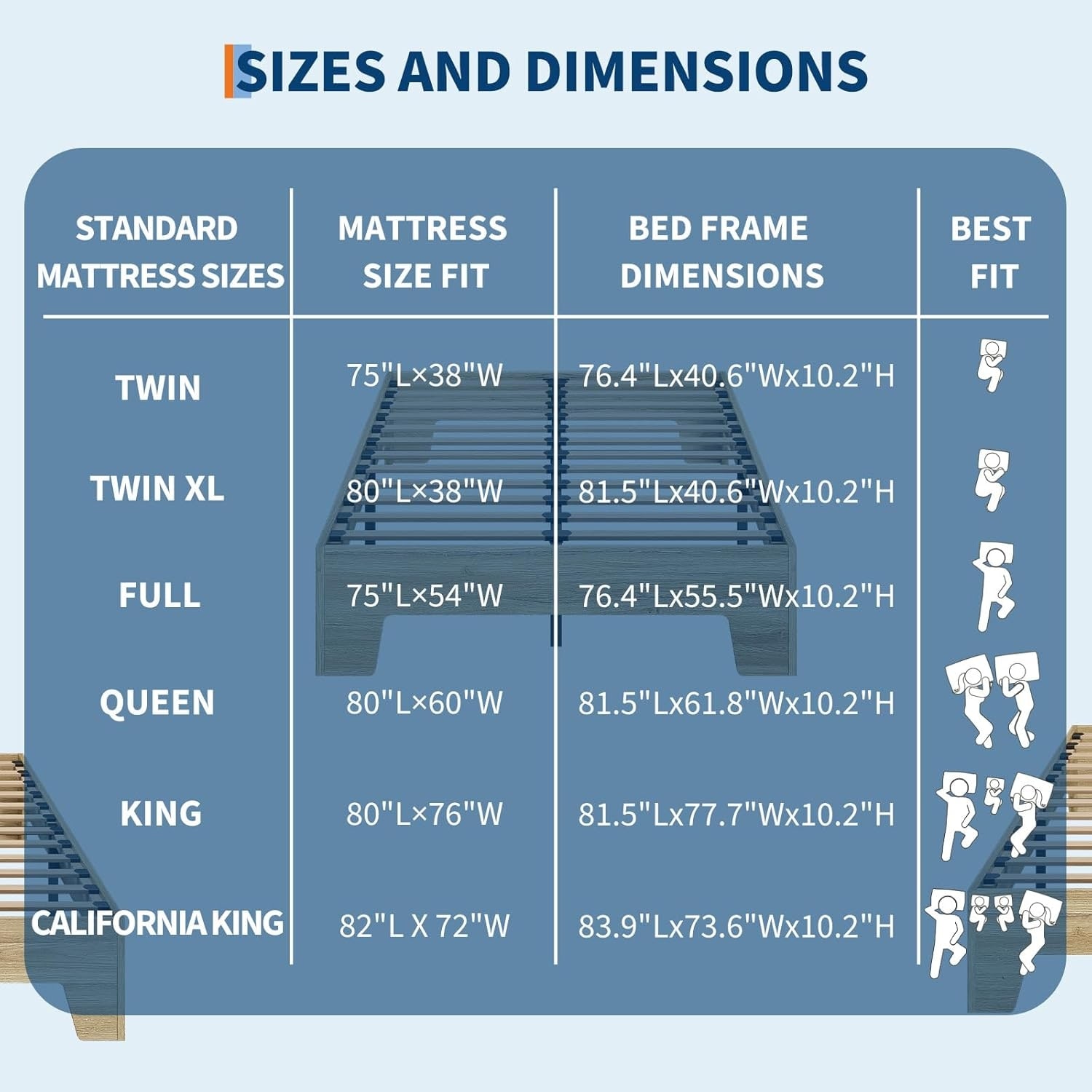 14'' King Size Wooden Bed Frame Mattress Platform Wood Slats Support