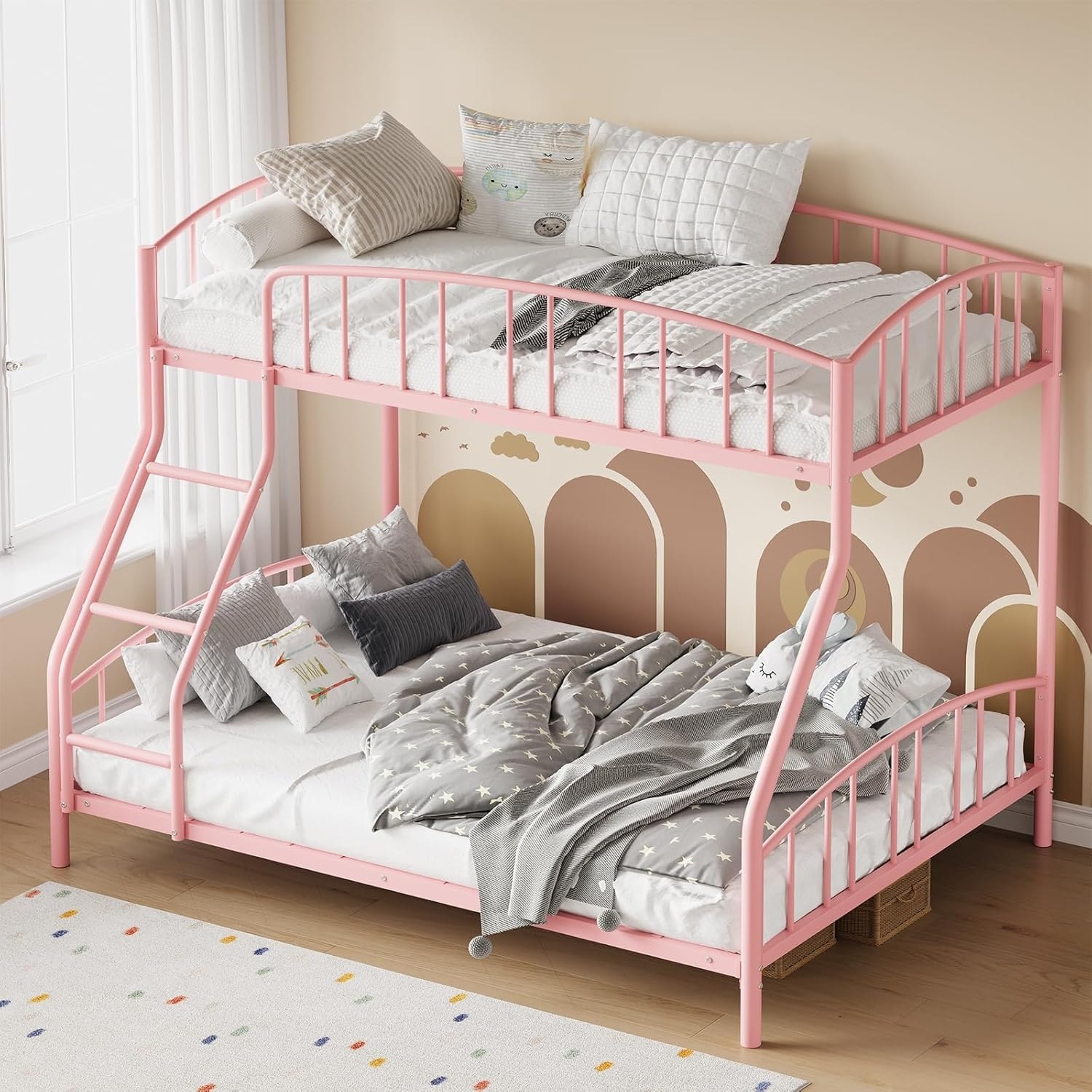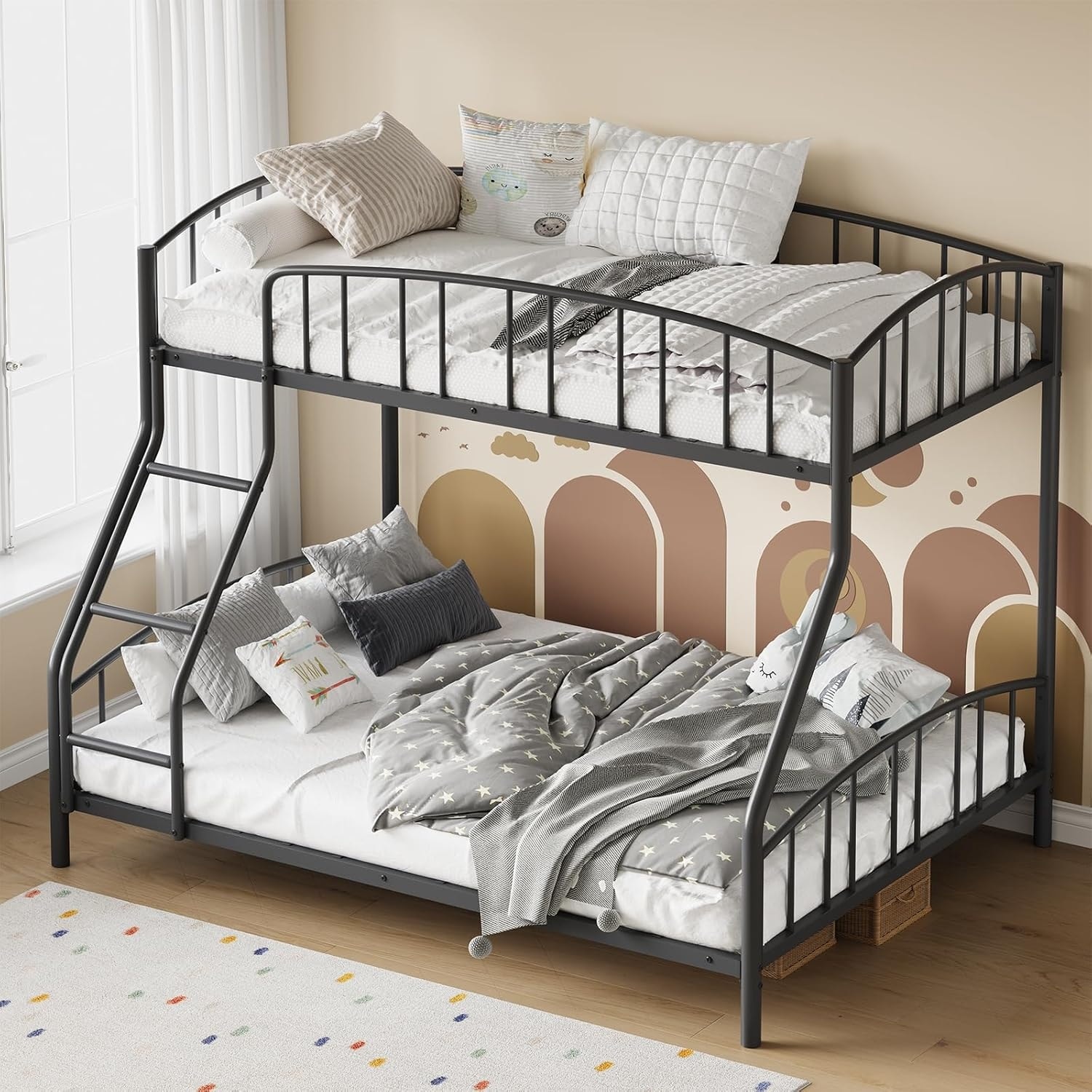 Twin Over Full Metal Bunk Bed, Heavy Duty Steel Frame with Guardrail & Ladder, Space Saving