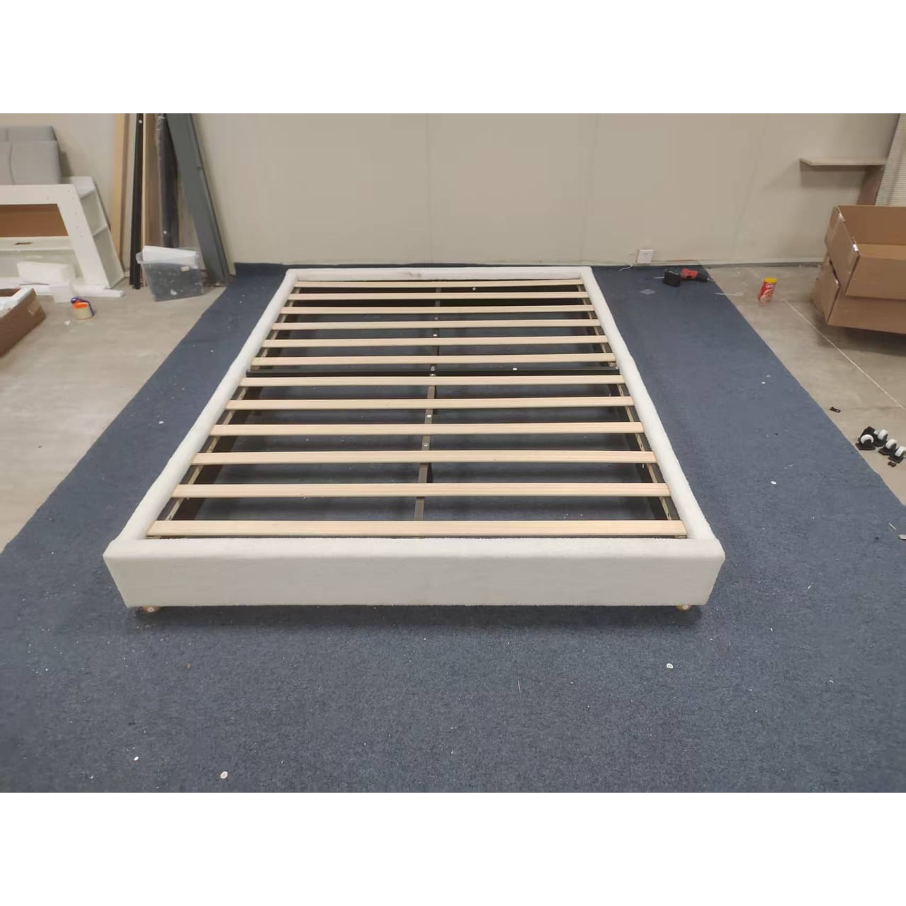 Cloud Style Teddy Fleece Bed Frame, Low Profile Platform Bed Without Headboard, Thick Boucle Fabric Upholstered Base