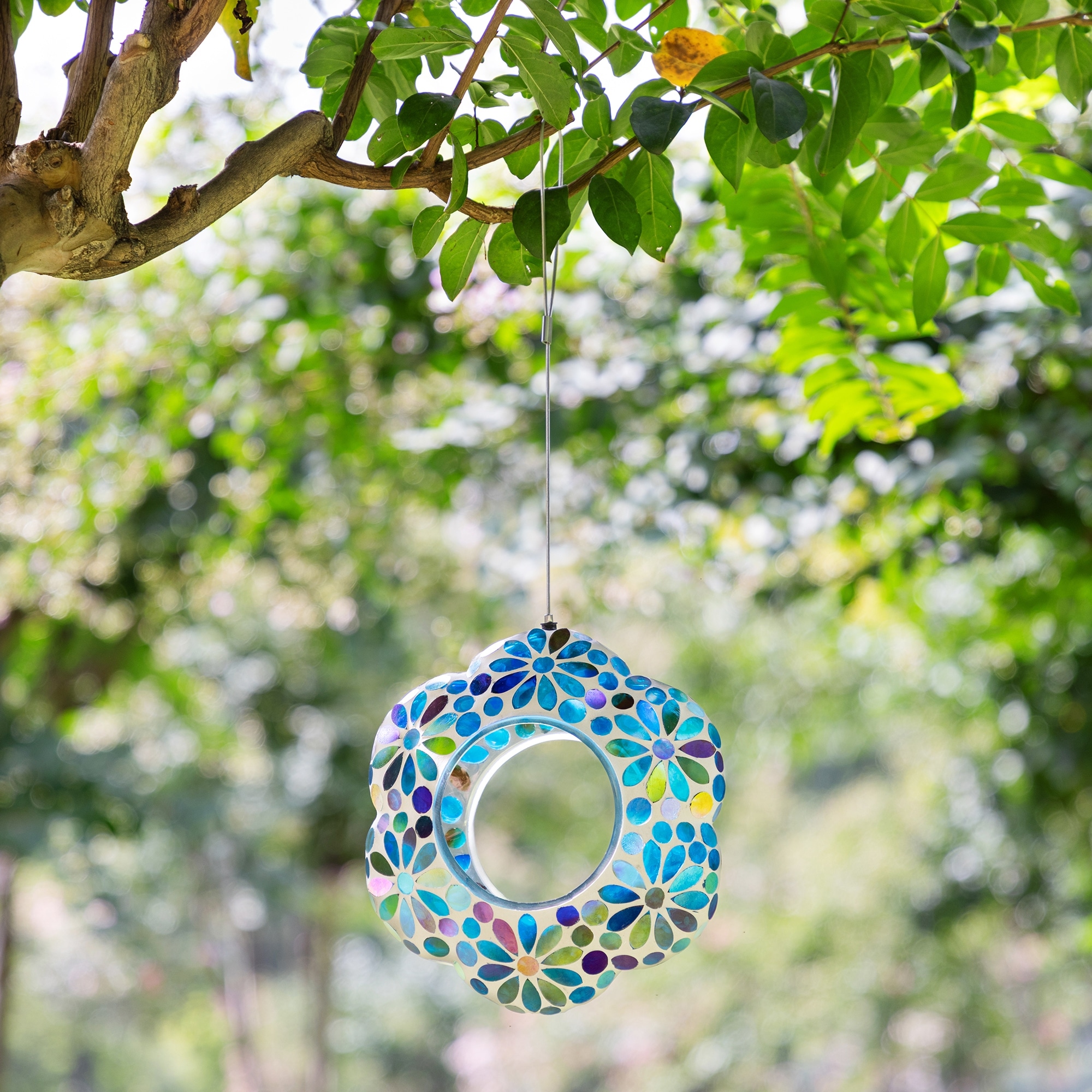 Glitzhome Round Hanging Multi-Color Mosaic Dots Birdfeeder